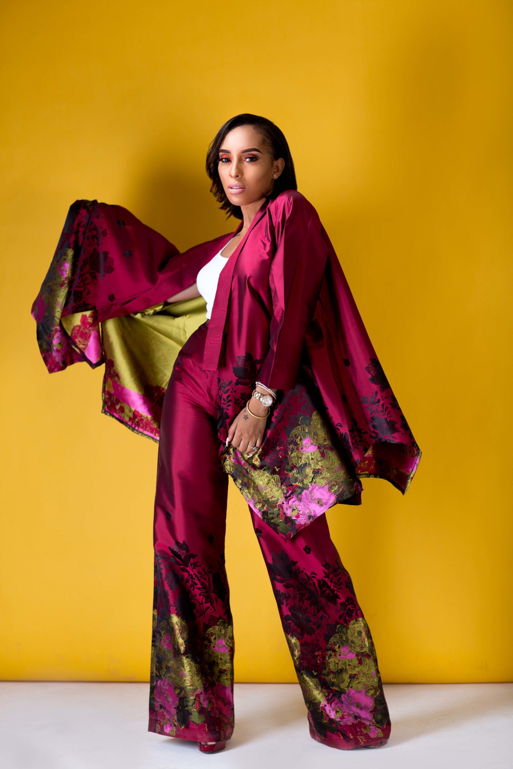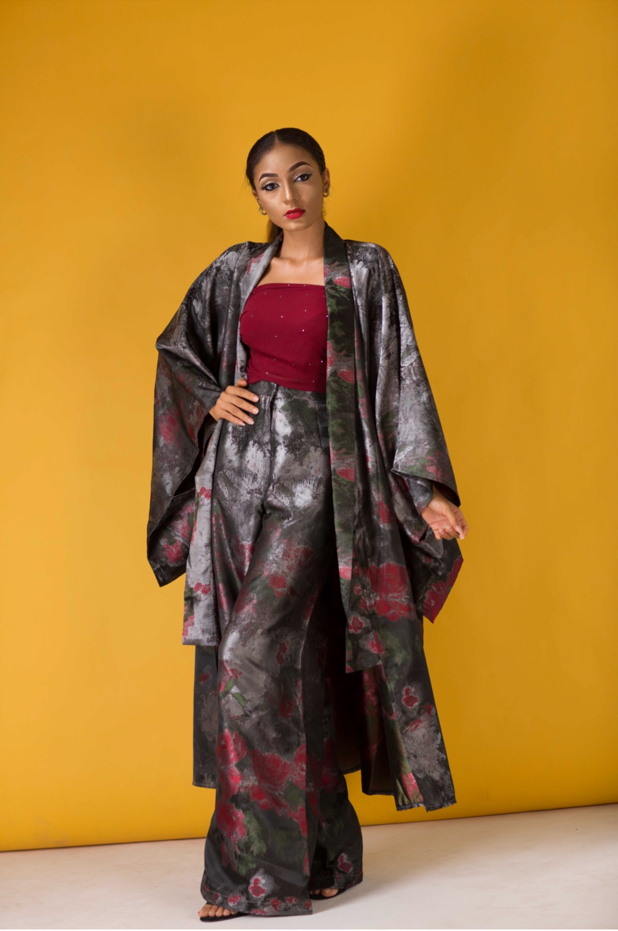 The collection is defined by pieces rich in colourful print texture and embellished brocade. The motifs behind this collection recount a personal inspiration from the diverse and ultra-modern women in fashion.