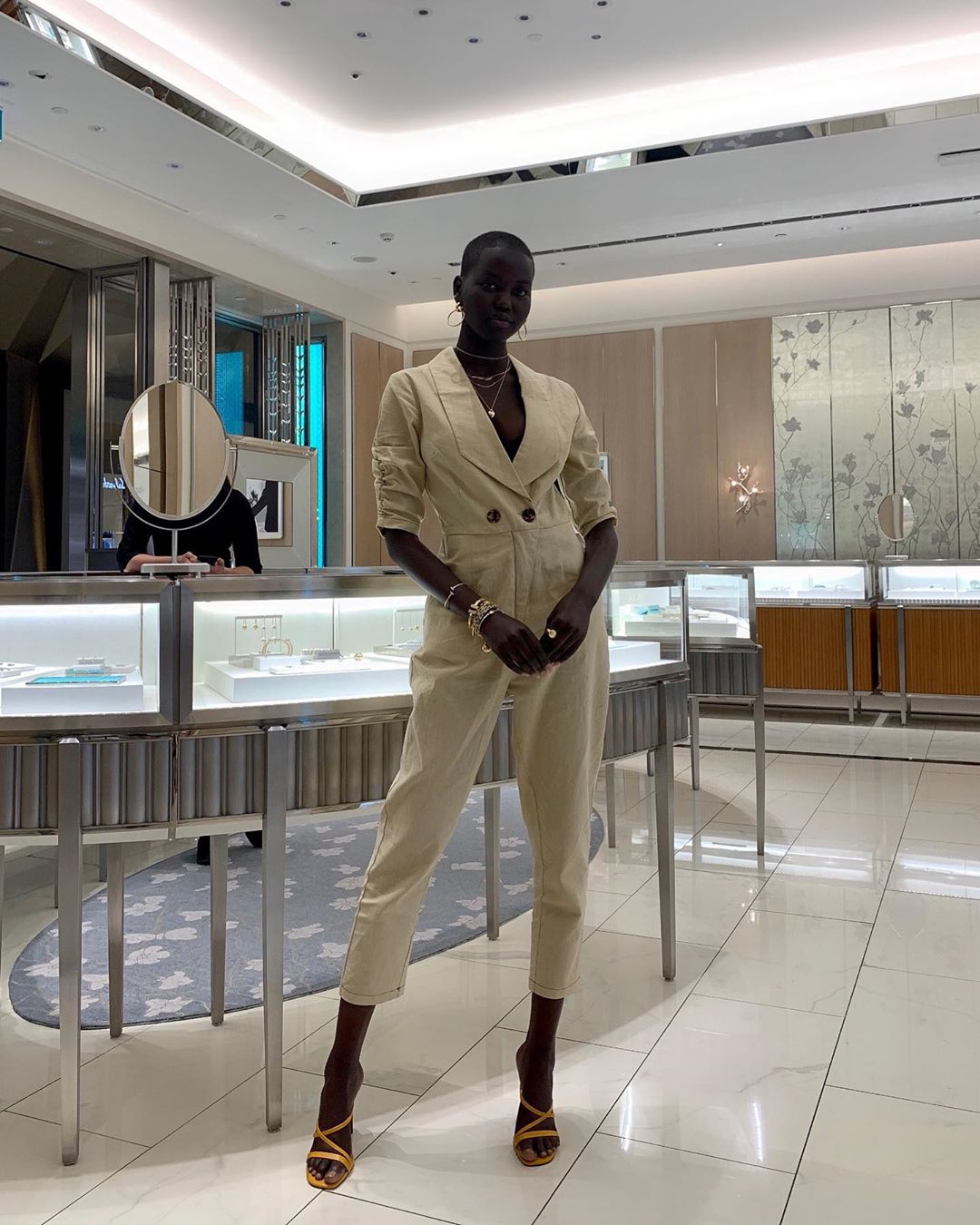 Scene 2: Adut takes her jumpsuit for a spin to the mall in the airport.