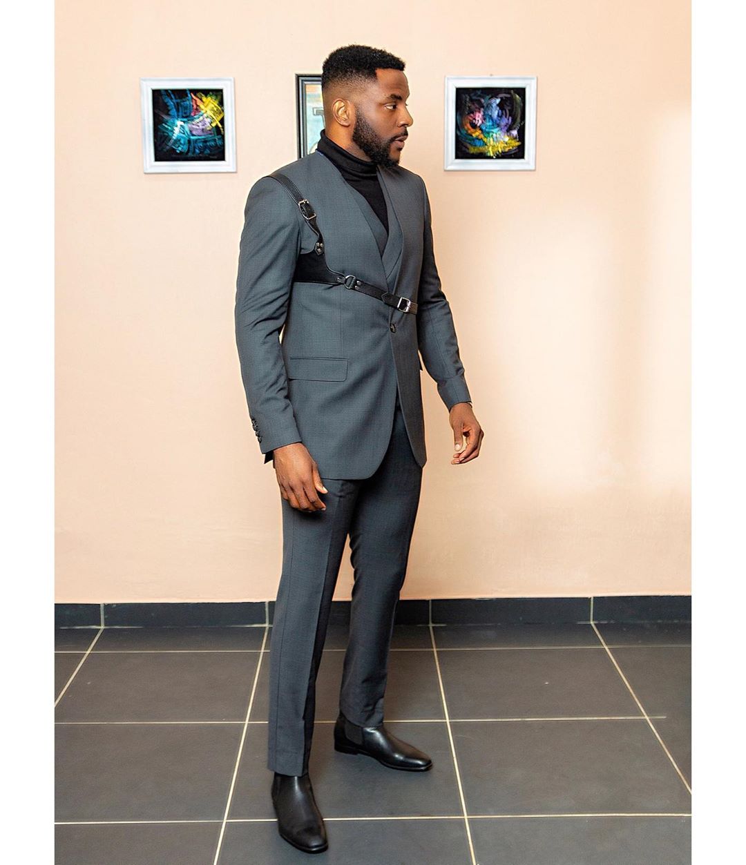 Wearing a full dark grey Mai Atafo suit – this Ebuka-Mai Atafo mix is truly a match made in fashion heaven – and a black turtleneck. He also wore black leather shoes and finished the look off with a harness – a growing trend we have spotted on Hollywood A-listers on the red carpets like Terry Crews, Michael B. Jordan, and Timothée Chalamet. Once again, Ebuka wins at fashion and we are waiting to see what he pulls off next week!
