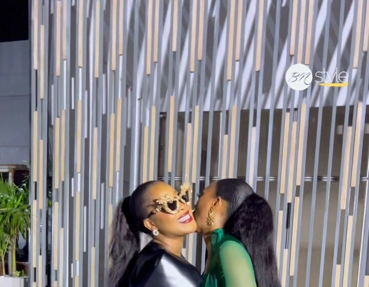 Ebuka pairs his pink outfit with rosette loafers, black studs, various pieces of jewellery and bold-framed goggles. See below: