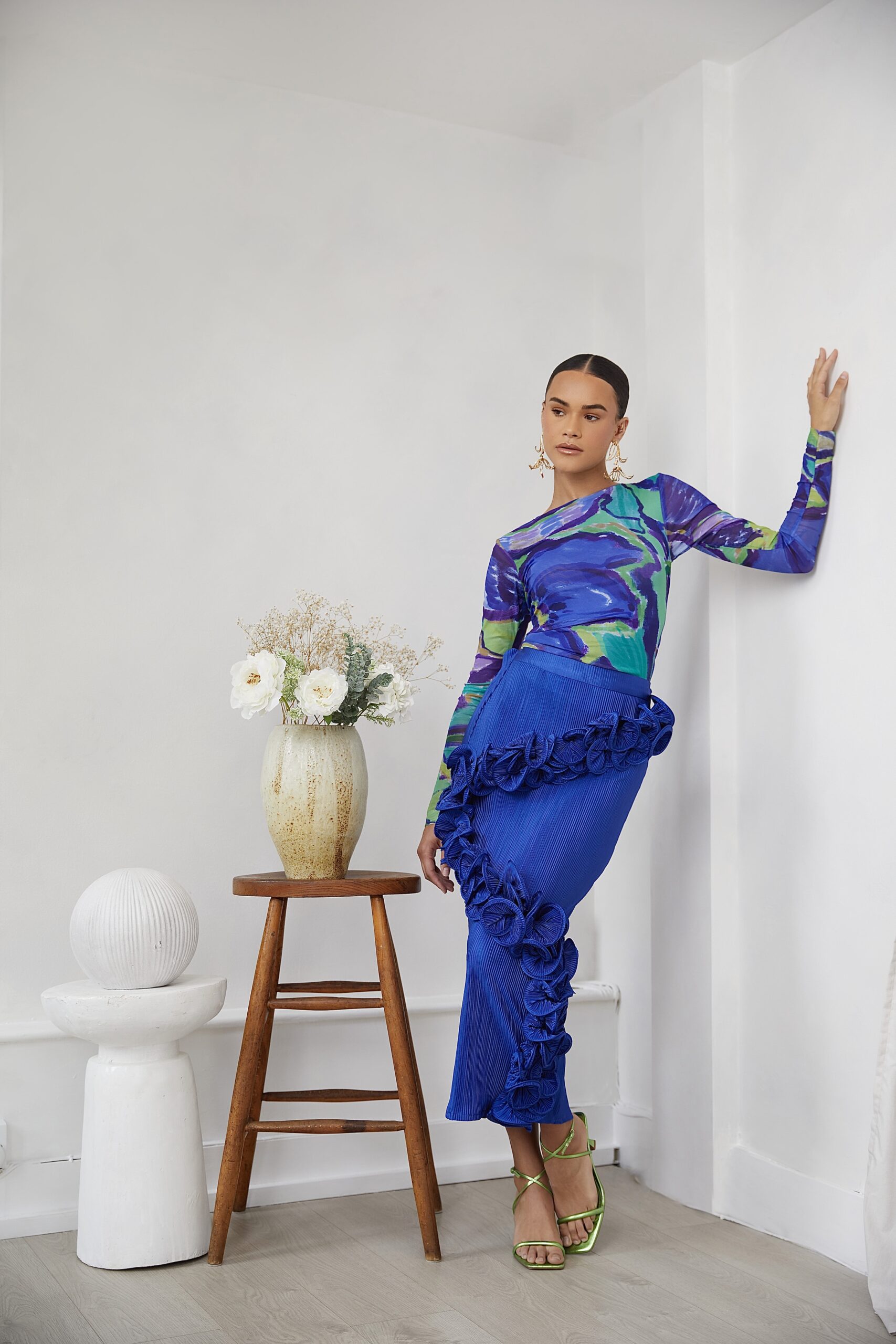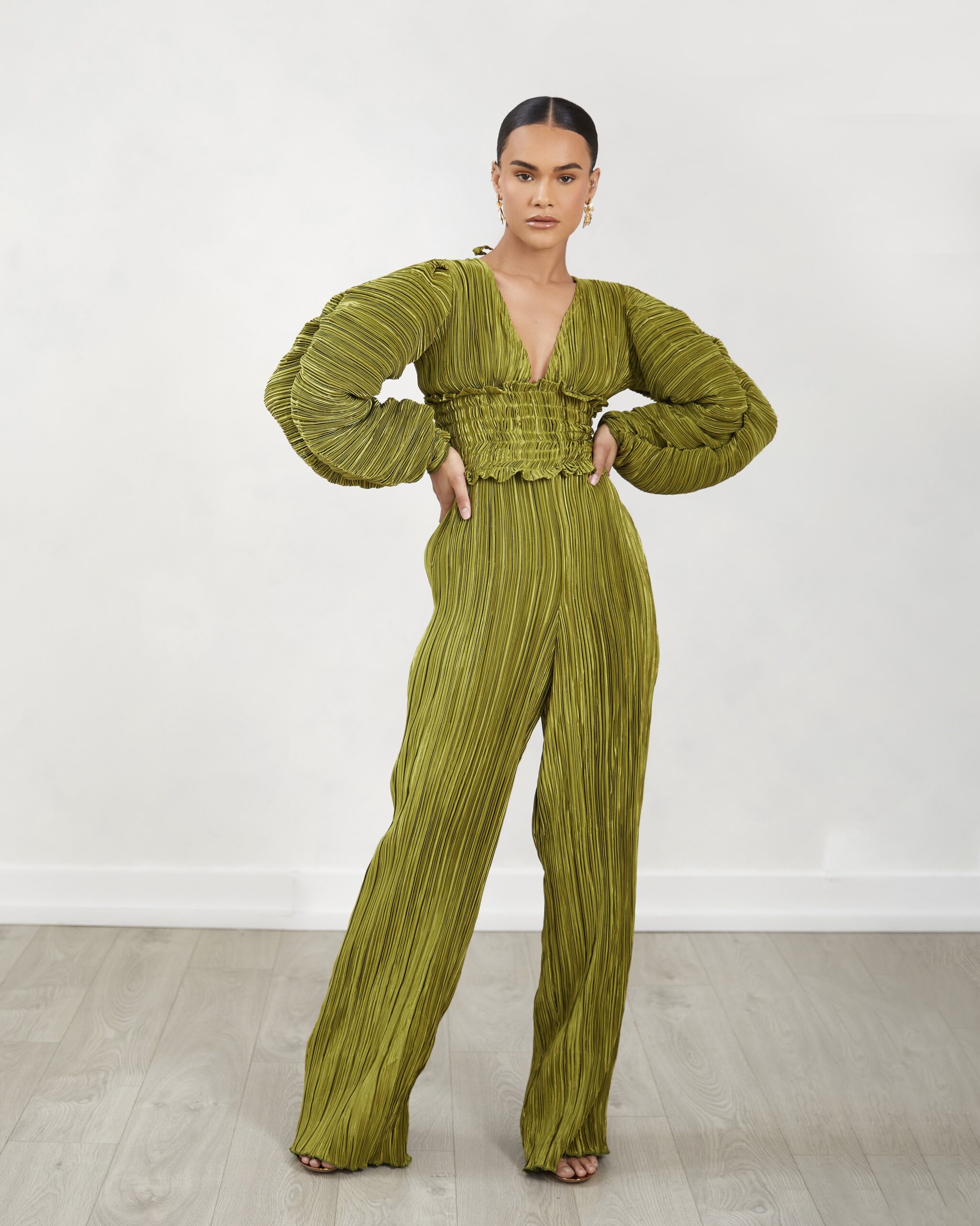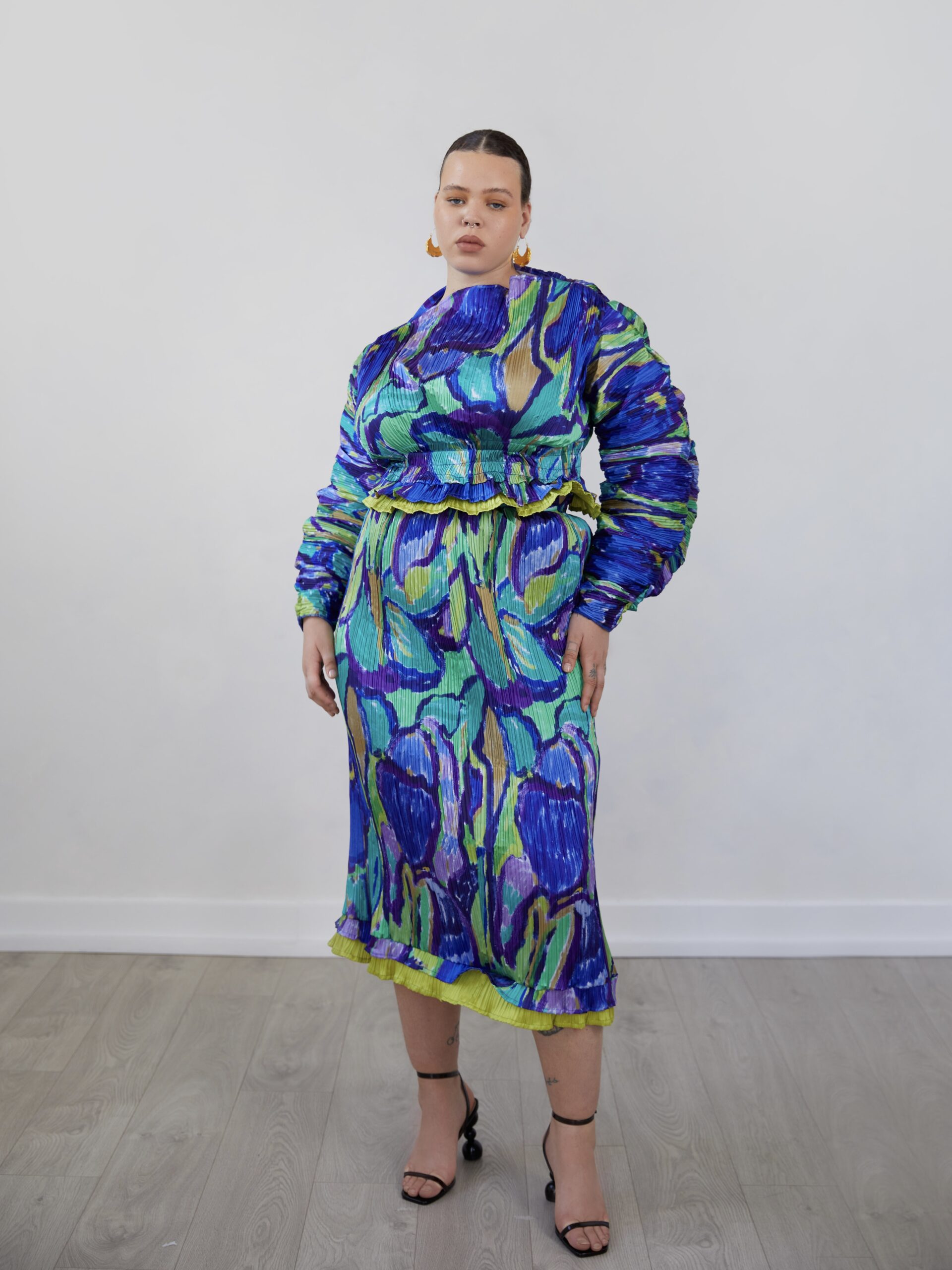 Reni: A common theme you’ll find in this collection is big structured sleeves, bright colours, pleats, and ruffles.