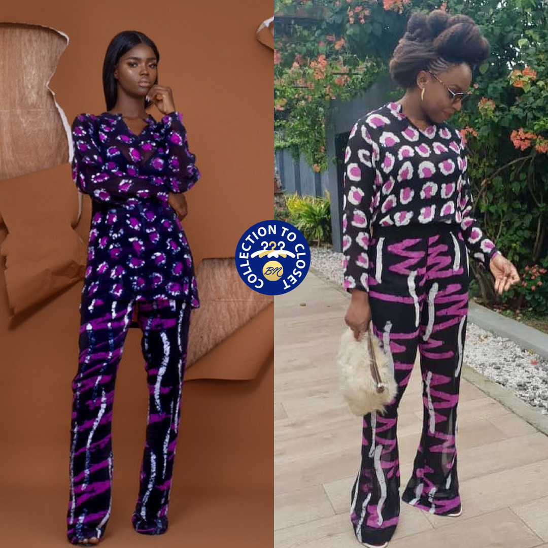 The attire is right off Amede’s Spring/Summer 2018. The bootcut pants which she styled with the matching top tucked in totally flattered Chimamanda’s frame and she opted for a cream coloured faux fur clutch purse by another Nigerian brand Wuman.