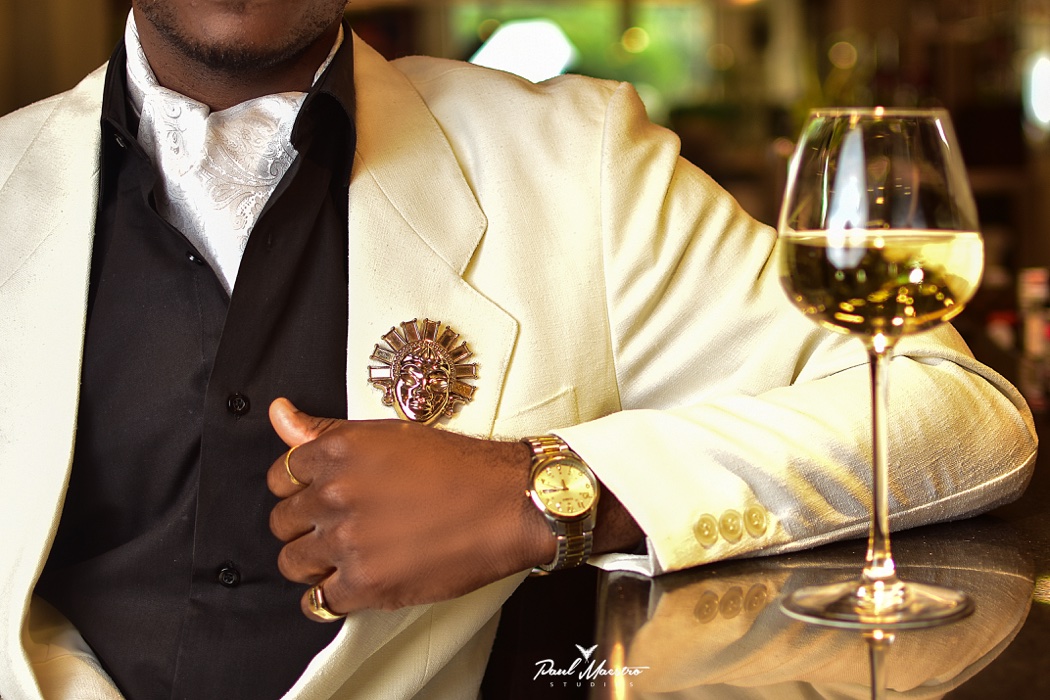 For this post, I am wearing an off-white two-piece suit and black suede shoe with gold studs. My choice of neckwear is a white cravat. I am wearing gold accessories which help to solidify the look. This look is appropriate when you have an event to attend that has semi-casual or smart casual as the dress code.