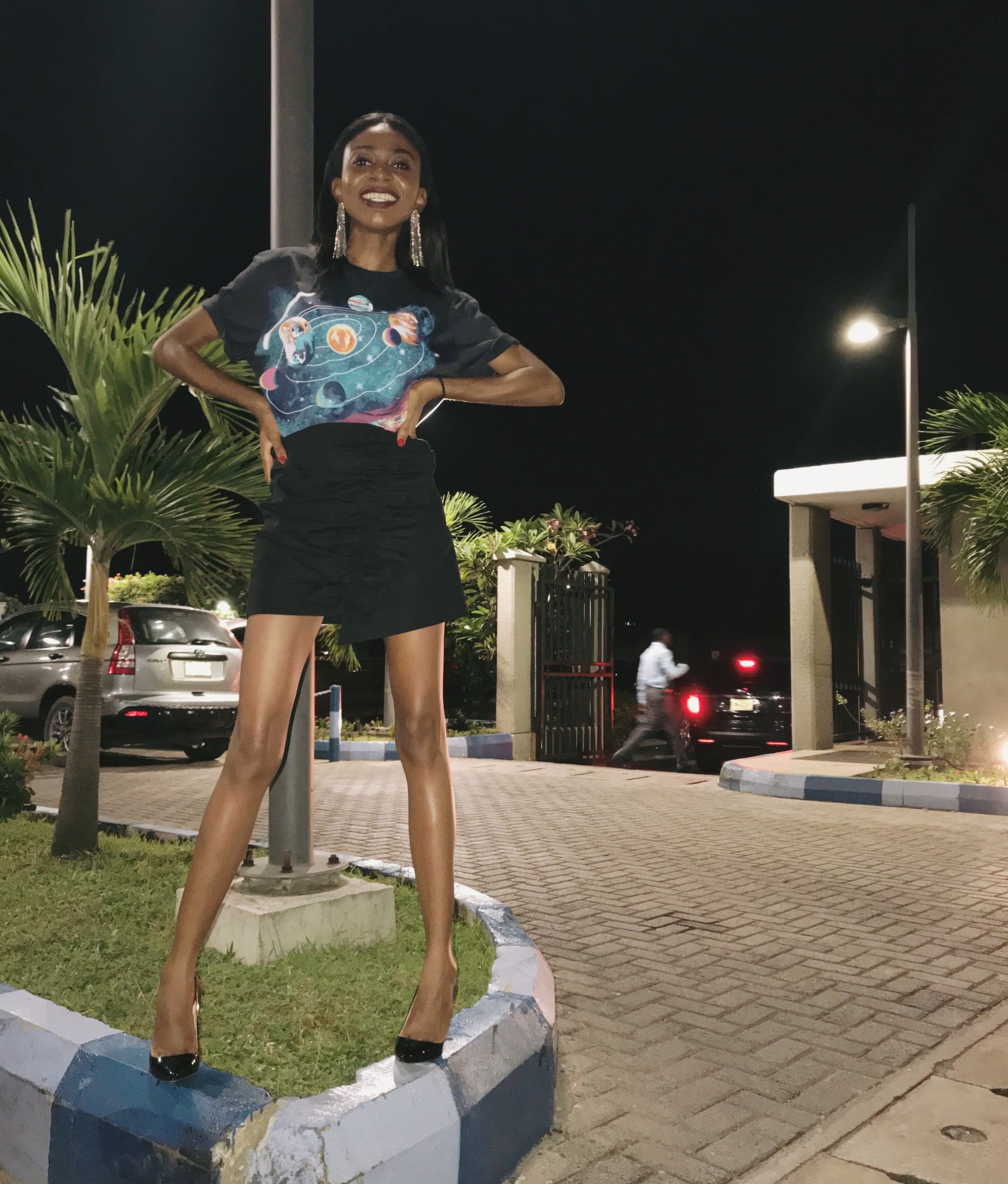 My style is a mix of basic and extra. I pair a casual piece with a remarkable piece to get the perfect effortless look. And this makes me feel glamorous.