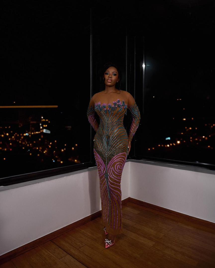 More impressive than the colour palette, was the exquisite arrangement of the embellishments. They weren’t scattered randomly, instead, they were meticulously laid into a captivating floral pattern around the bust with stalks extending downwards. Keep scrolling to check out the look: