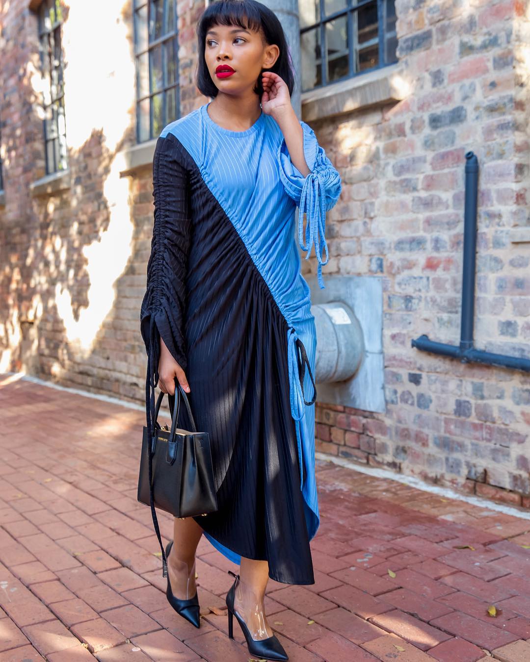 Case in point, this blue and black asymmetric Zara paired with a bold red lip, is the kind of look that’s often in her style rotation. Her looks are refreshing and give us seemingly limitless style options – check out some of our very favourite Kayla Stamboul looks in recent times