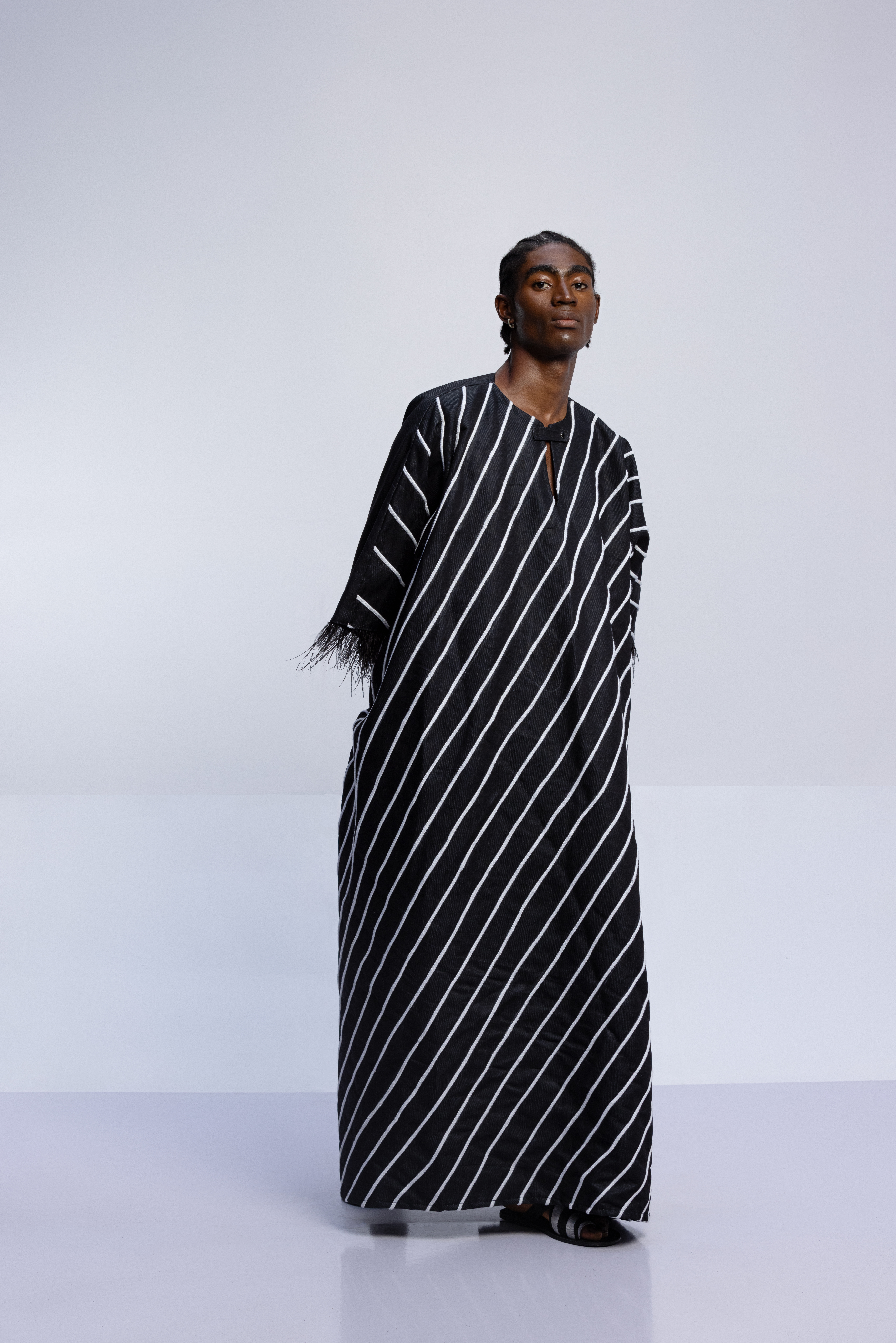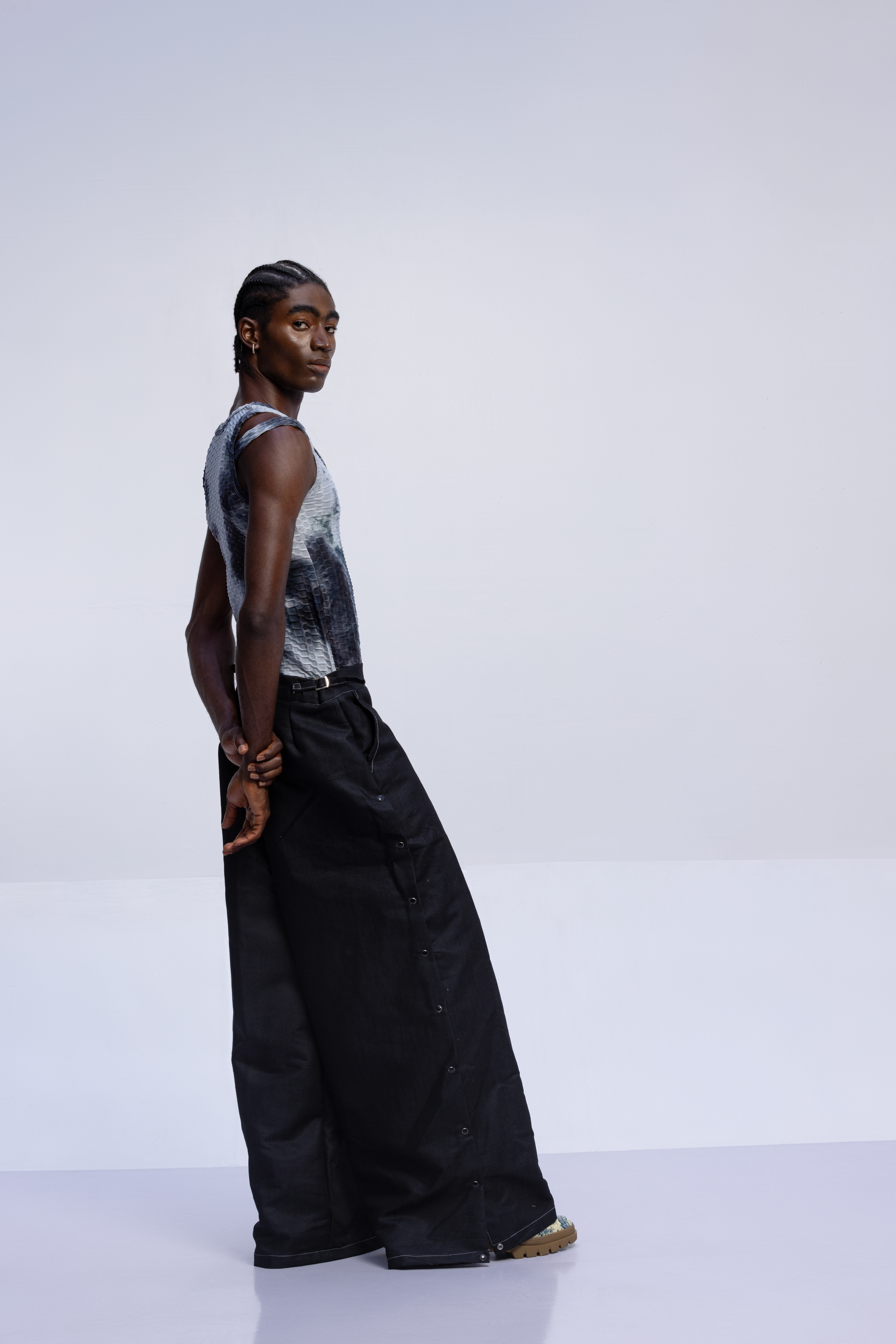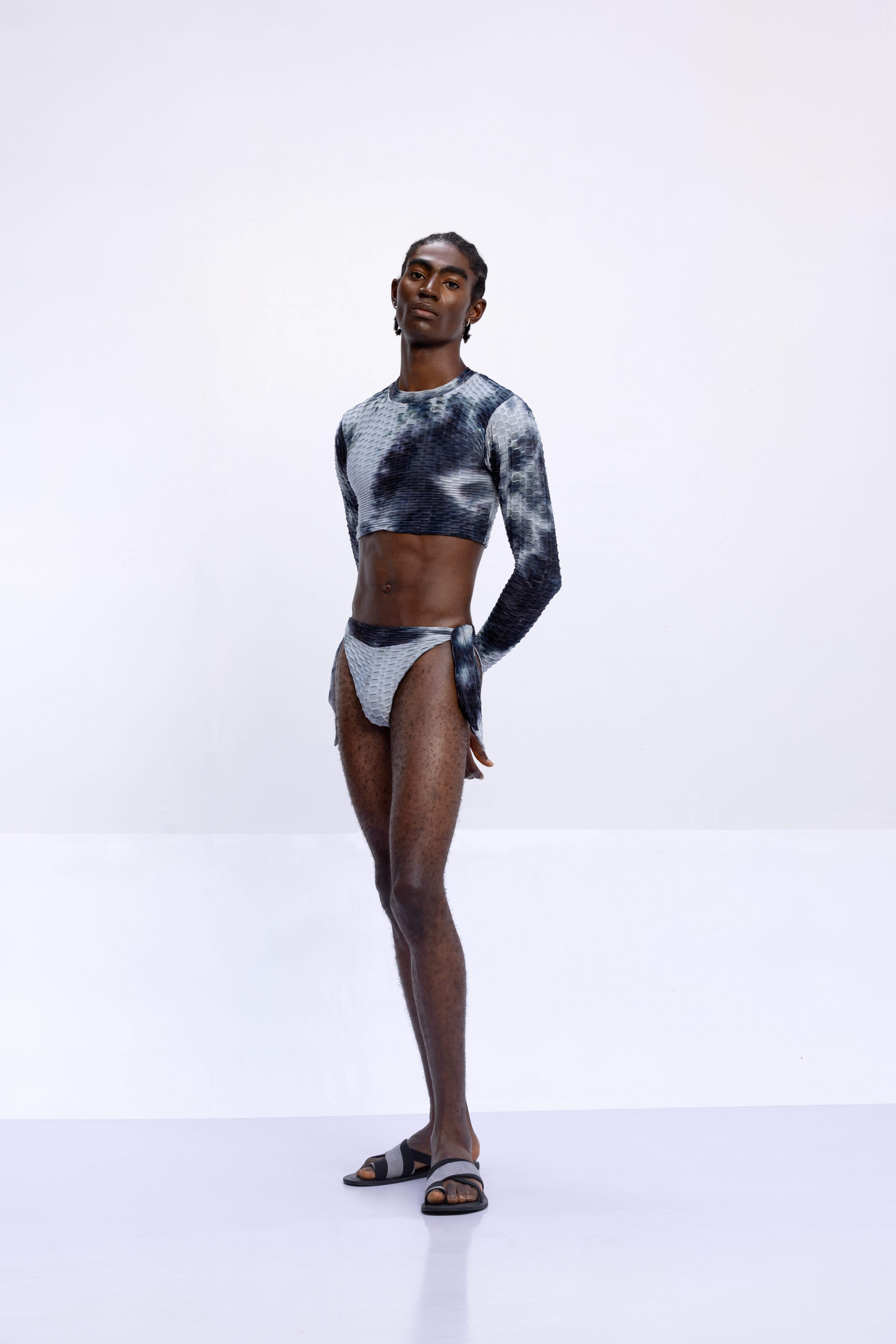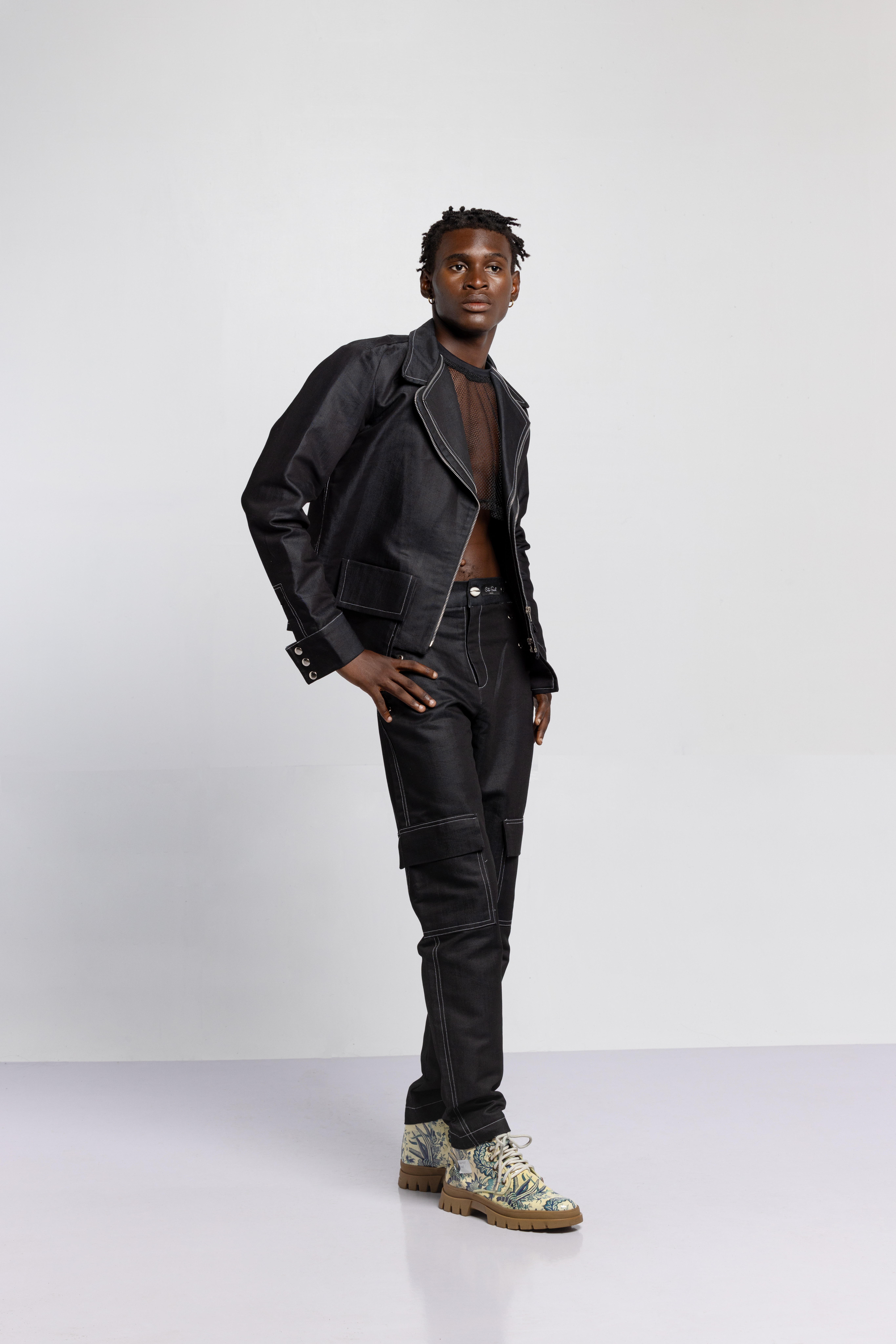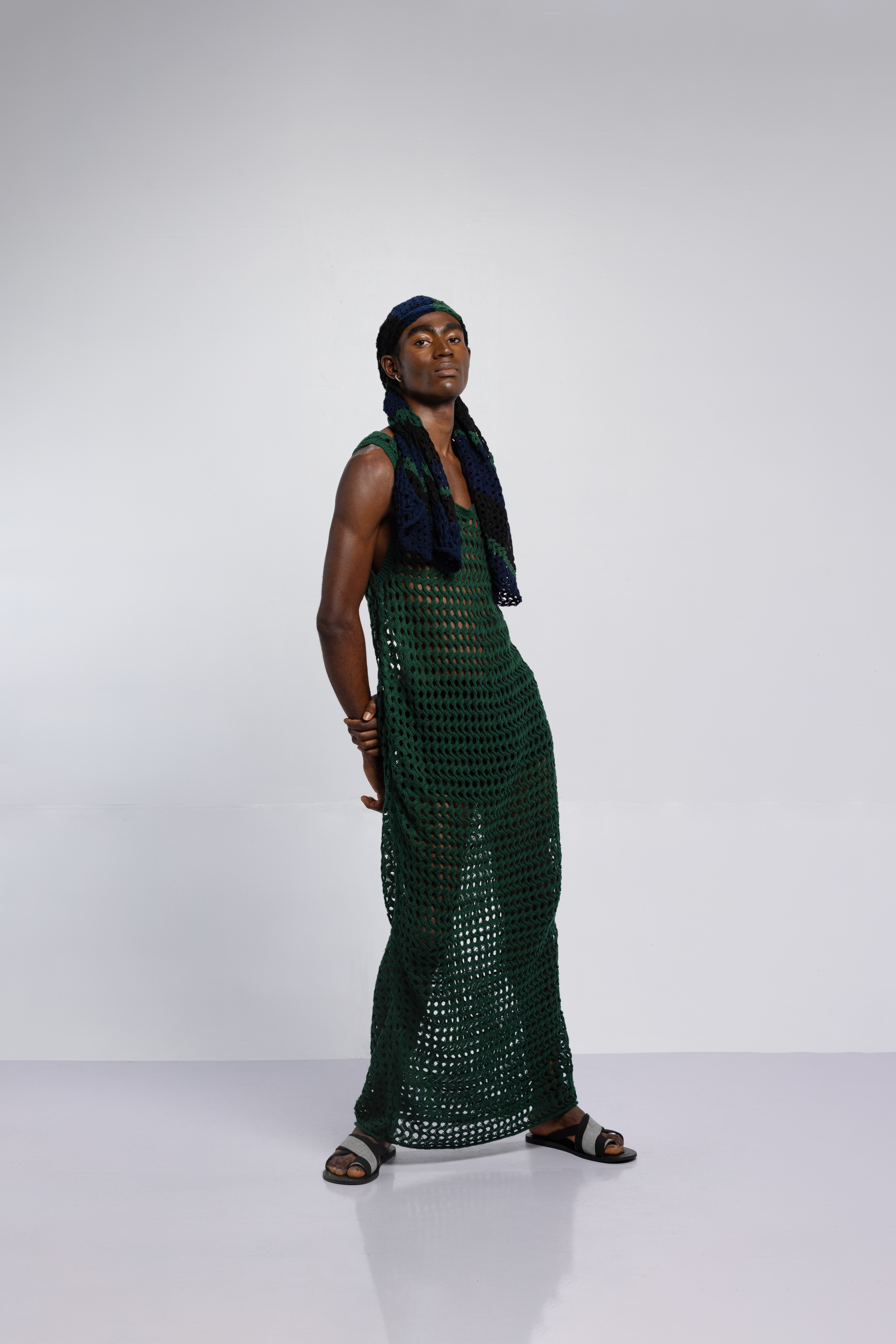 The tattoos we see today have replaced the scars that once were etched on the skin. Igboya is a reminder of the resilience of African culture, which still perseveres while evolving. This collection is nothing less than a visual symphony, with intricate embellishments, knitted pieces, and masterful textures that celebrate the monochromatic palette of black, white, grey, blue, and green. Each color tells a unique story that is etched in scars.