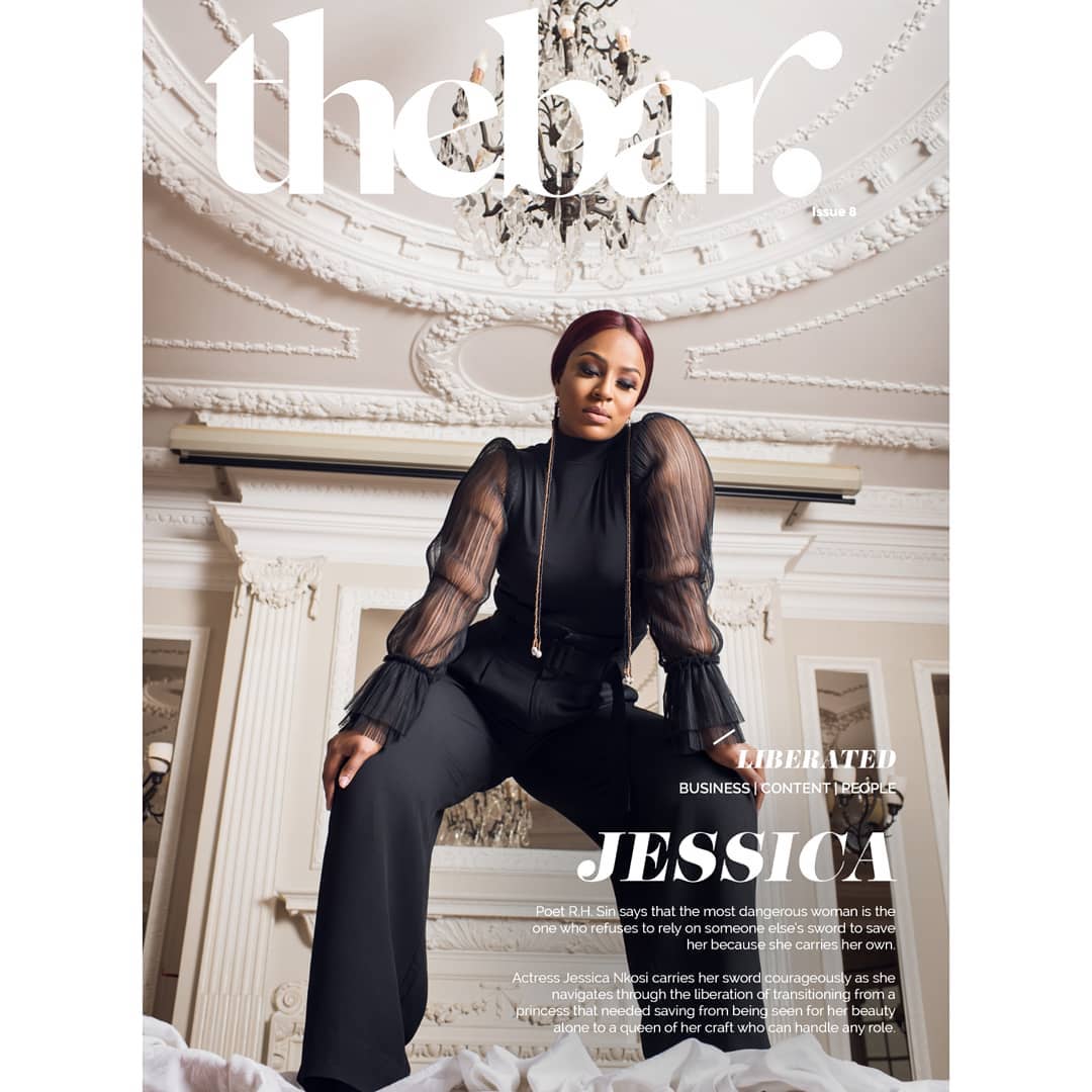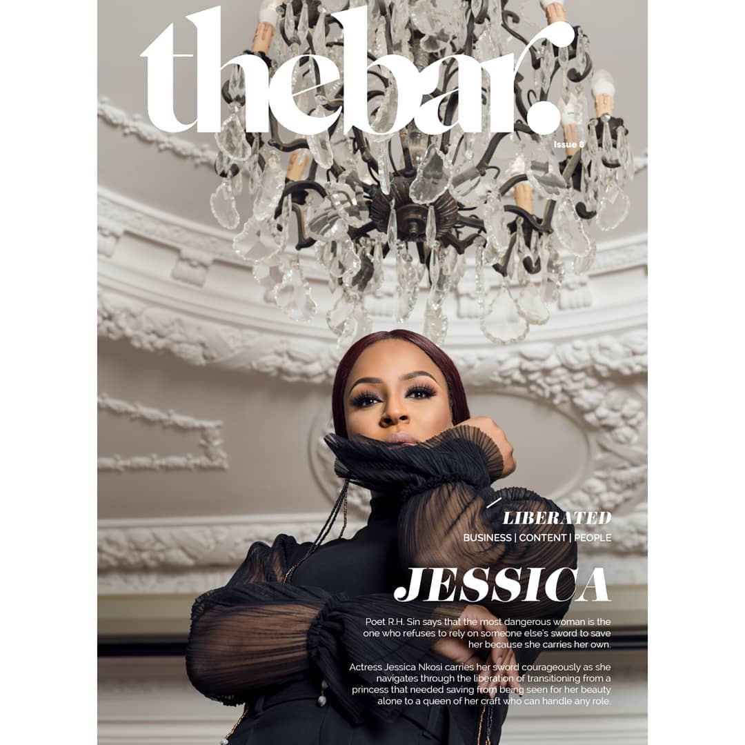 In the feature story with The Bar Magazine, Jessica takes us behind the scenes of her glamorous life and all the way back to her getting admitted to study law in the University of Kwa-Zulu-Natal and the many transitions and challenges that the actress has had to face and is still facing just by virtue of being Jessica Nkosi. The actress discusses her unique way of dealing with imposter syndrome – a syndrome many creatives can identify with – and pressures of her ever transitioning life and it comes as no surprise to us that the actress finds mental solace in acting.