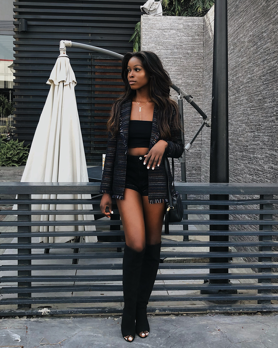 If you’re in warmer weather right now, take a cue from Kehinde Smith, who shows us a chic way to do date night style . The influencer was spotted out and about in Lagos wearing a coord set from online retailer REVOLVE and in another tweed blazer and shorts look that has us dreaming of a vacation in Los Angeles. Complete the look with open toe boots (similar here, here and here) like Kehinde or opt for killer heels.