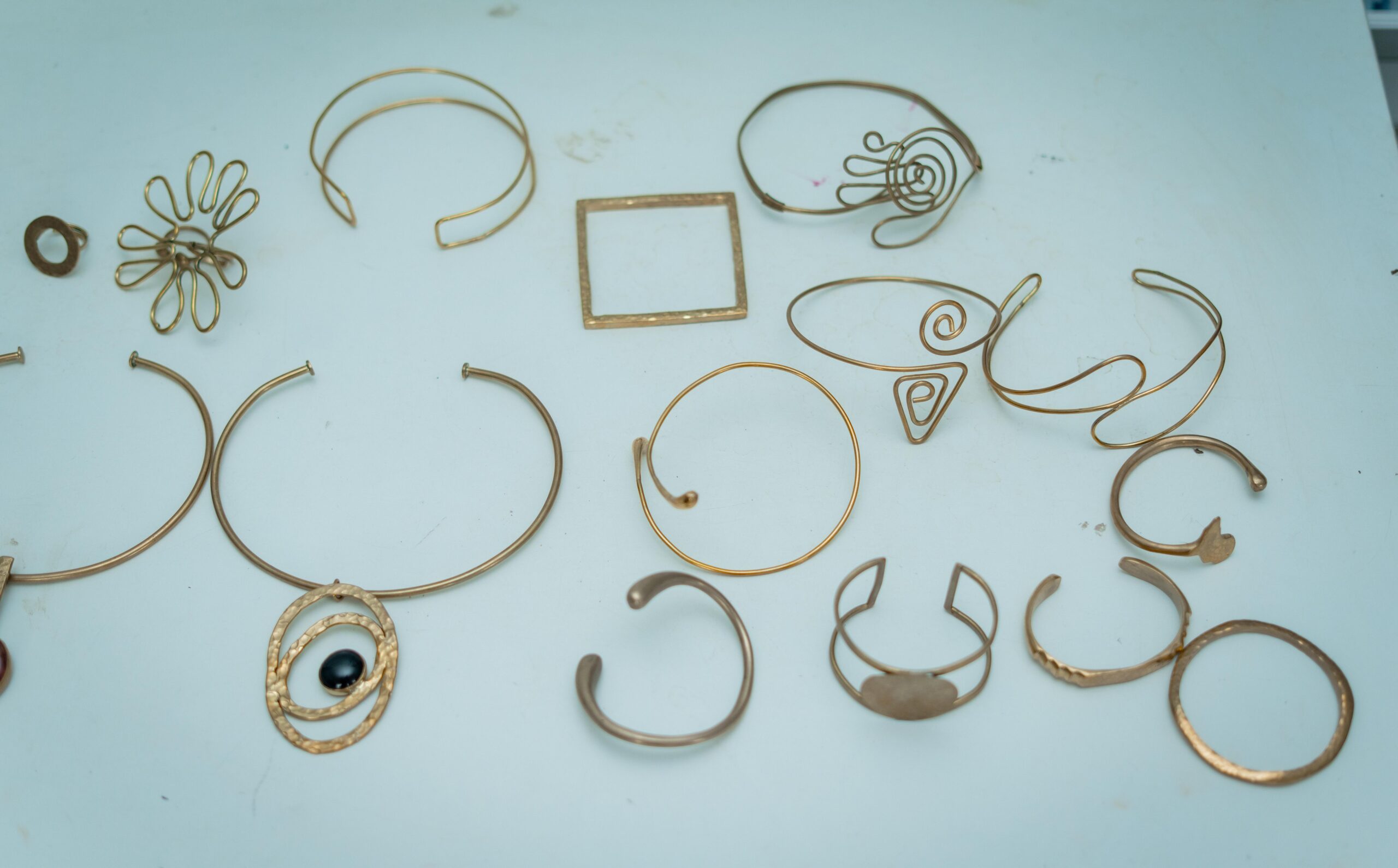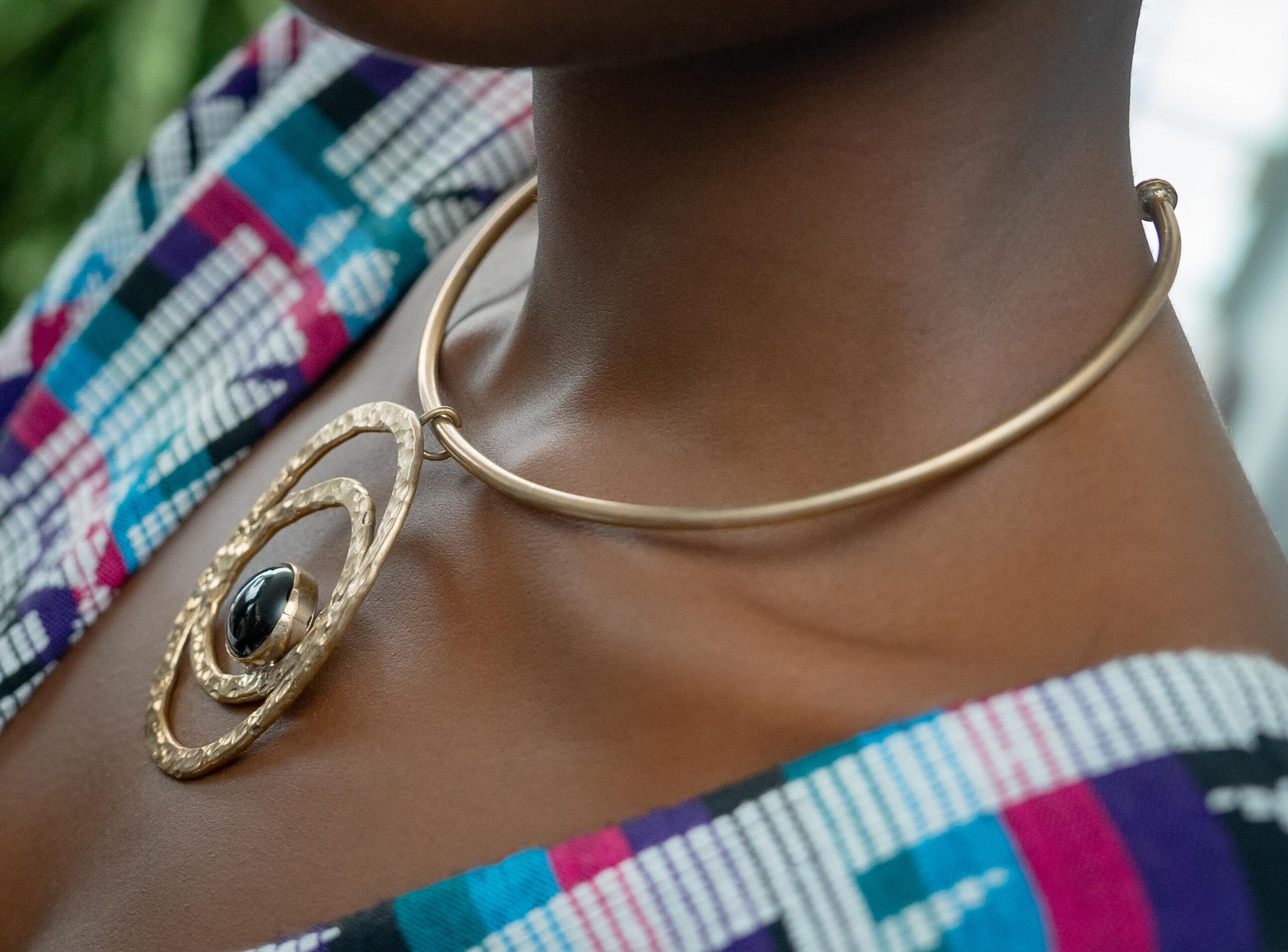 Jewelry from Unrefyned Studios and footwear from Maliko