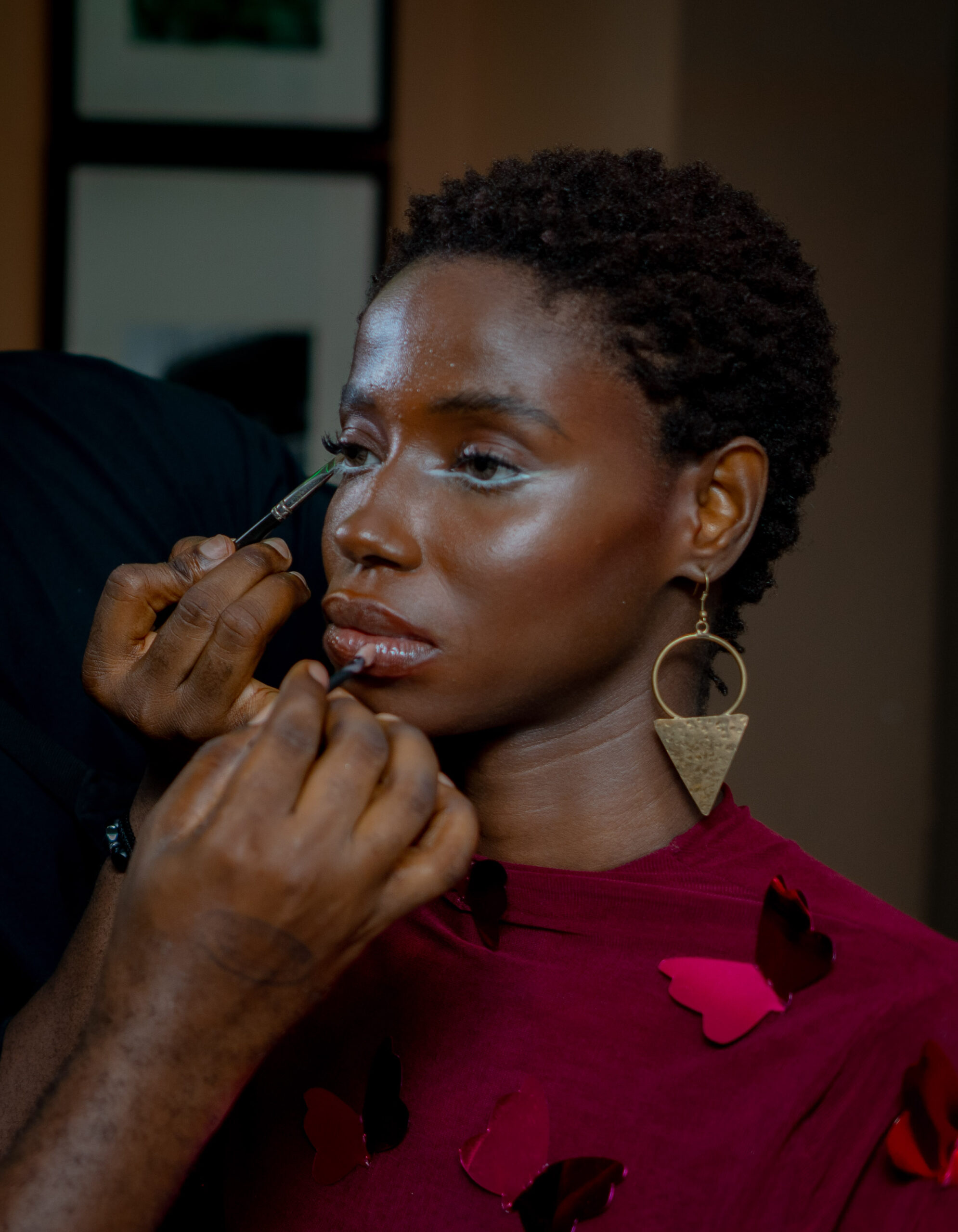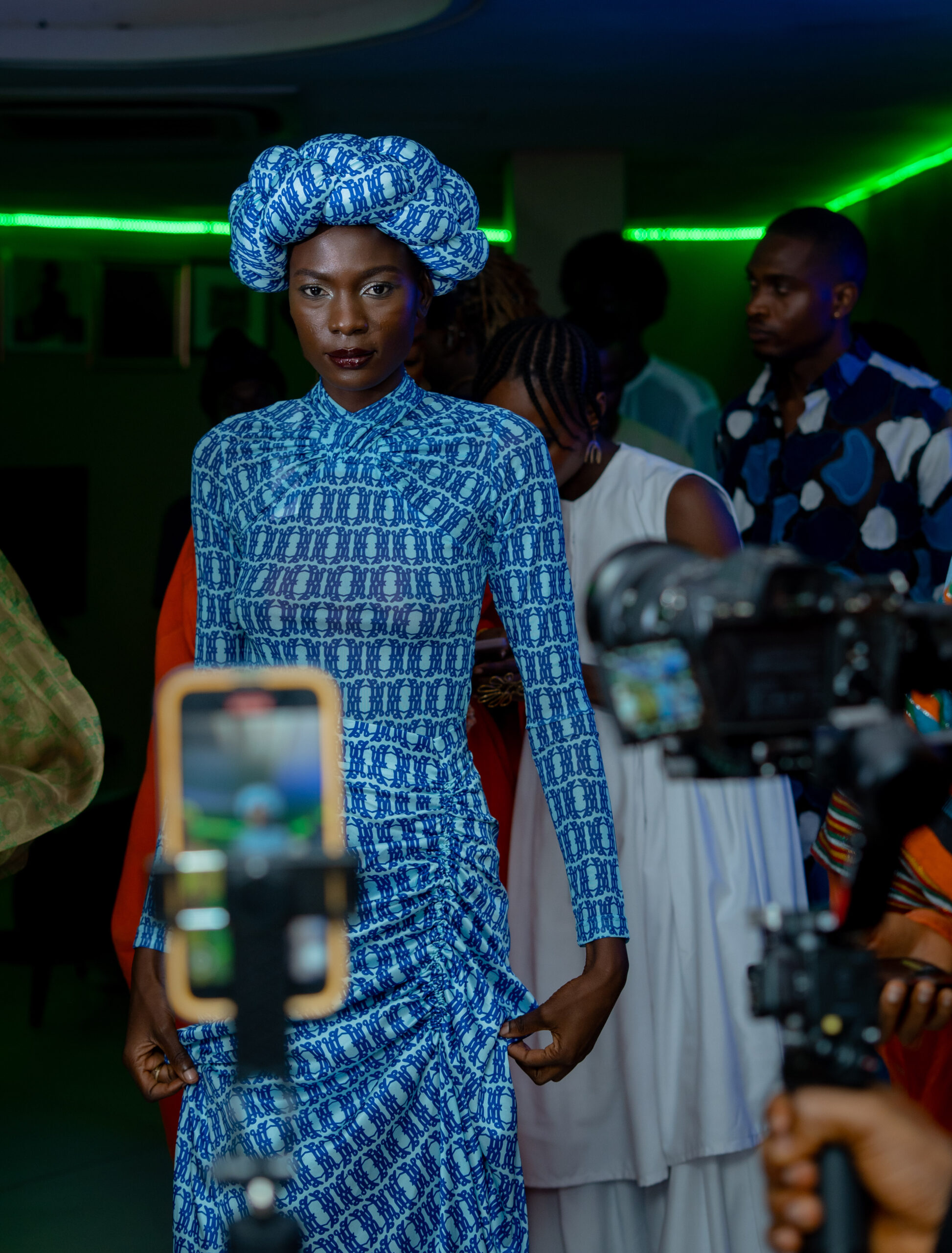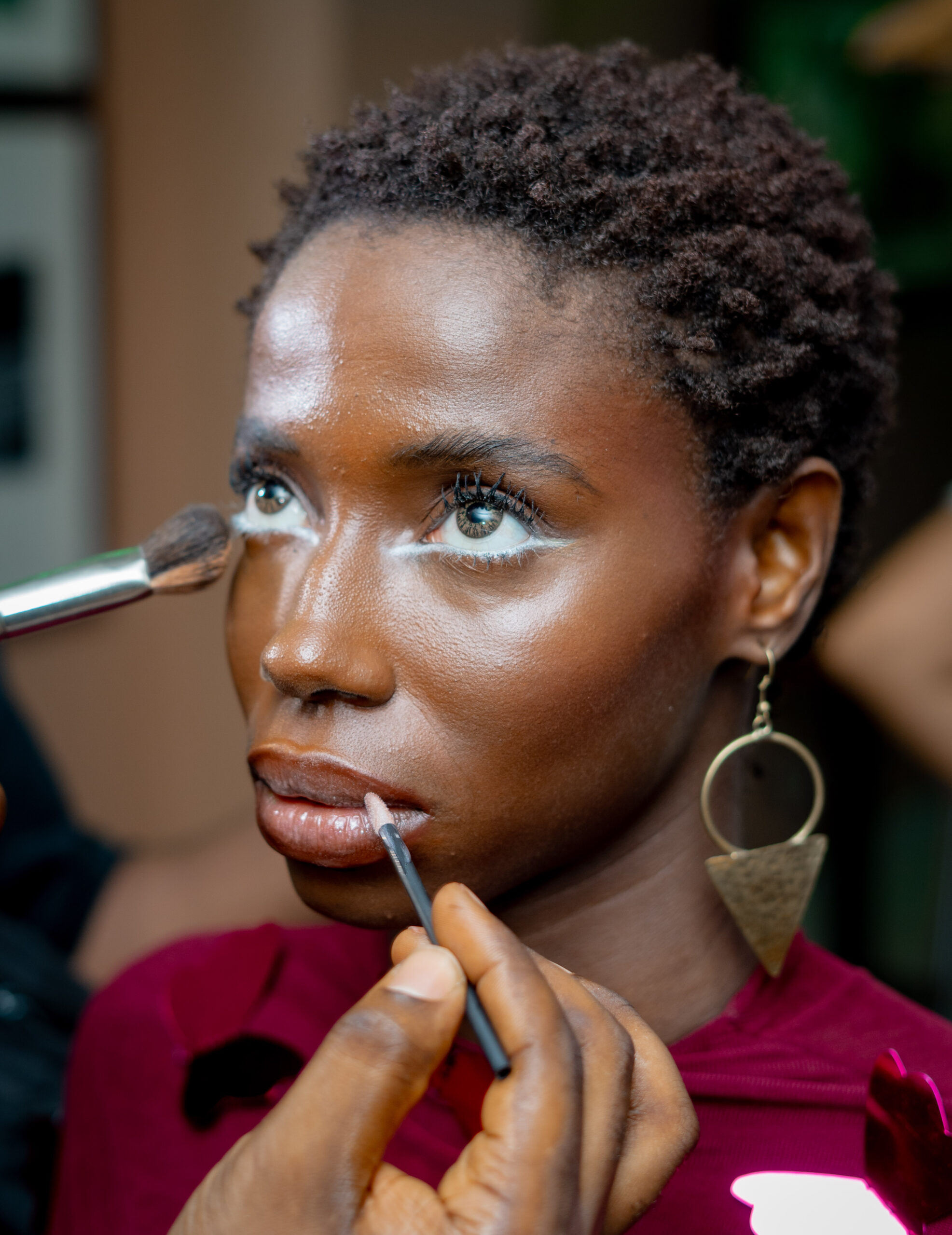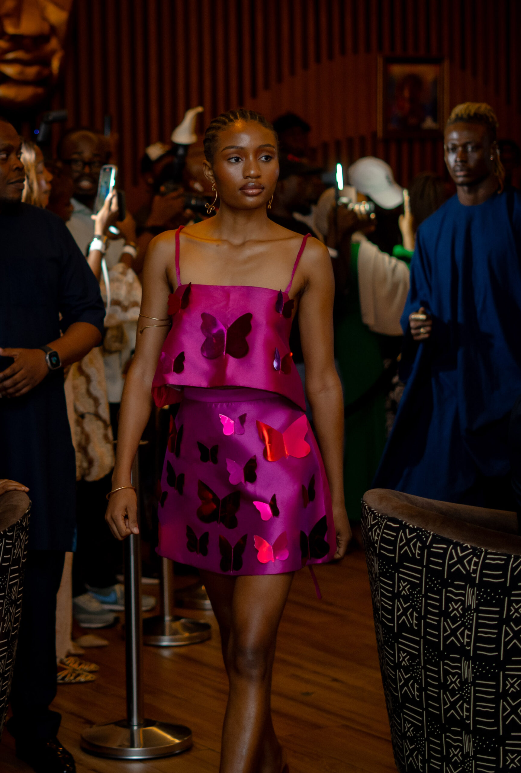 Complementing the avant-garde fashion was the striking beauty direction by Essenza. The lead makeup artist, viewing the models’ faces as a canvas, translated the designers’ vision into a series of flawless looks. The mood board was a sophisticated reflection of global runway trends that have seamlessly integrated into the daily lives of Lagosians: dewy skin, illuminated eyes, and bold lips. The makeup was not an afterthought; it was a deliberate and integral part of each look, embodying an attitude that is both vibrant and confident.