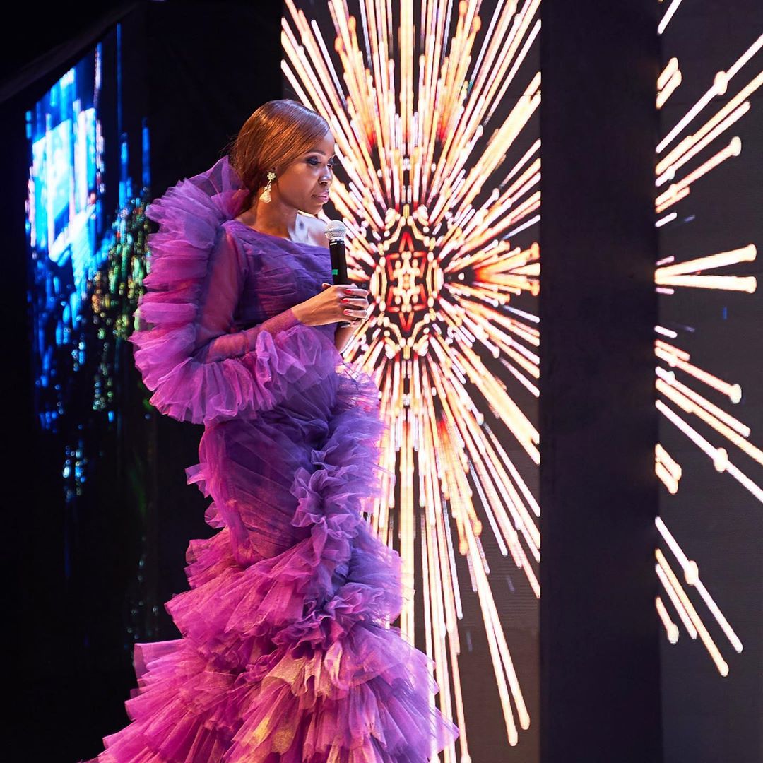 On hosting duties at the star-studded event was Nollywood IT-girl Lala Akindoju. The A-list actress served lewks all night. Starting the slay-age strong Lala opted for a shimmer mono sleeve jumpsuit from Nigerian clothing brand Trish’o Couture. Styled by Yolande Okereke, she rocked the sliver number with an up hairdo, bold face beat by Prospotted Makeovers, Estella Lagos earrings and a pair of white strappy sandals. She later switched into a silver pantsuit from Nigerian designers Mai Atafo.