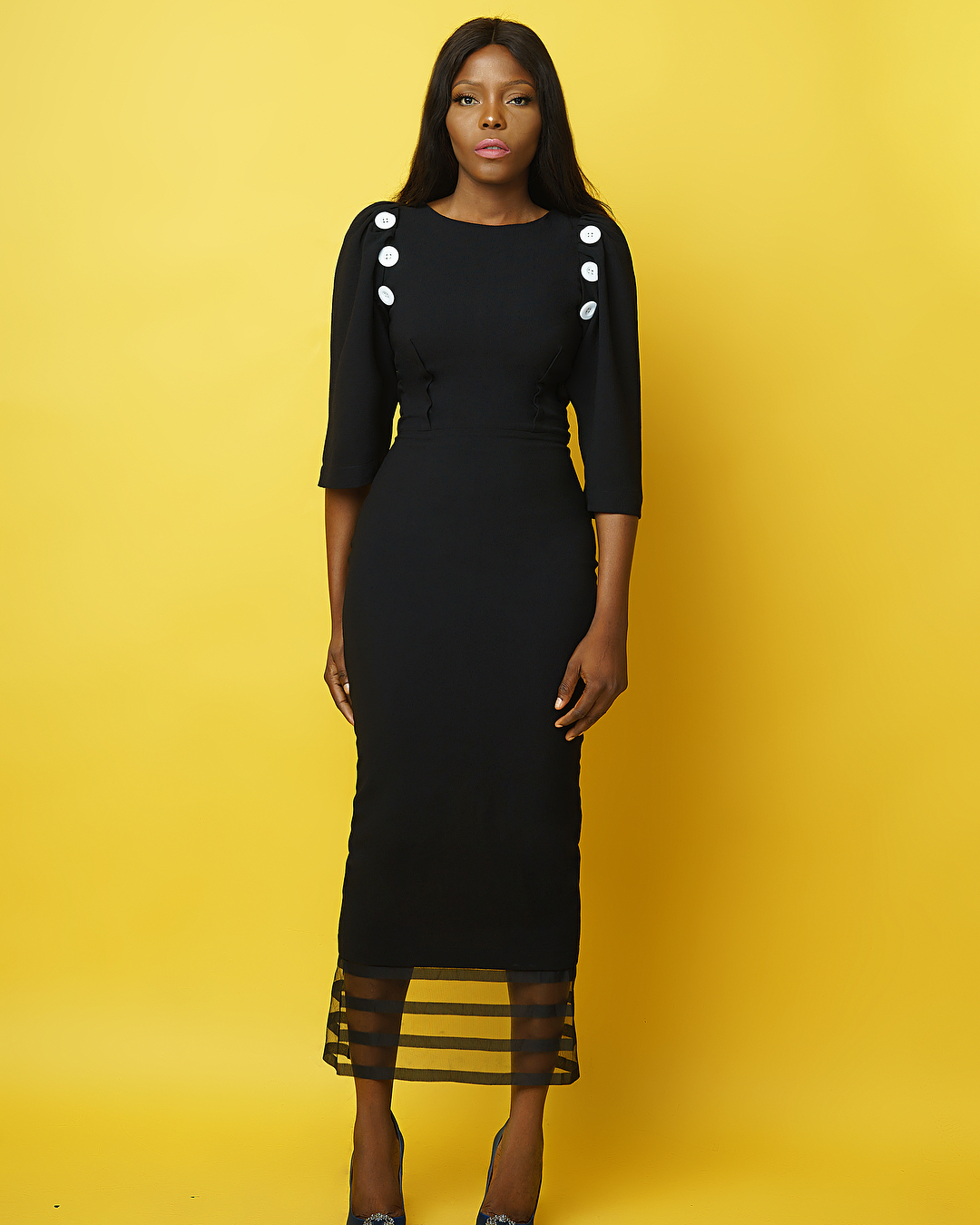 If you are searching for an effortless way to look fab, the LBD is always the way to go. Wana Sambo created this incredible, versatile little black dress. The Debby dress is far from boring with contrasting white button embellishment, detachable puff sleeve detail and striated organza bottom panel.