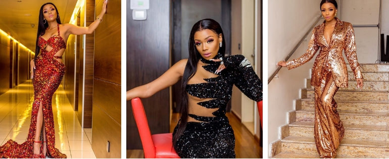 On the cover, Linda wore a gorgeous purple ombre strapless dress by Port Of LNG, styled by the talented Lesego Kgosimolao. She paired the look with white gloves, multi-layered pearls and matching earrings.