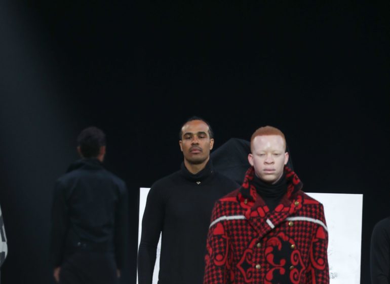 Neo Akpofure was spotted at Lagos Fashion Week rocking an ombre 2-piece down the runway for Nigerian culturally attuned menswear label — Emmy Kasbit.