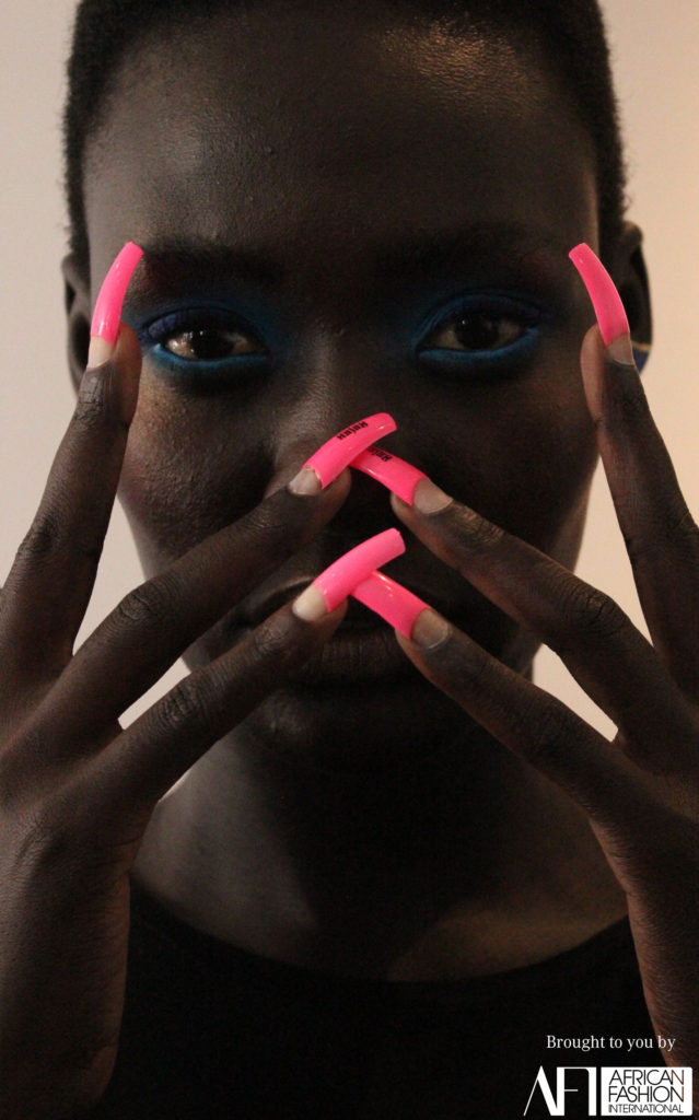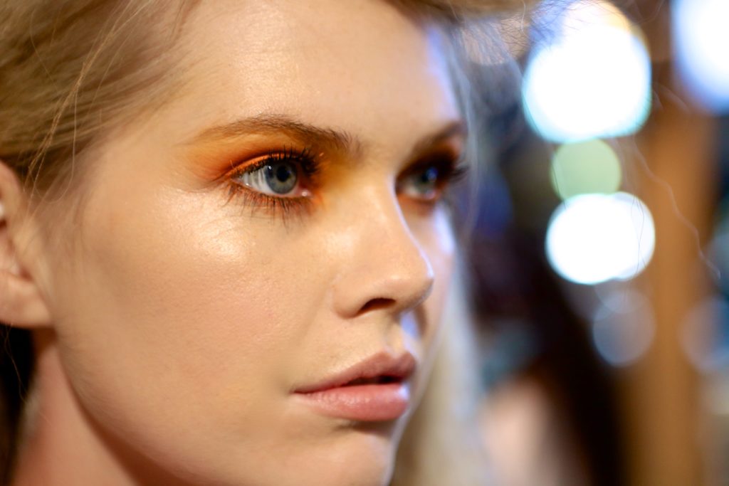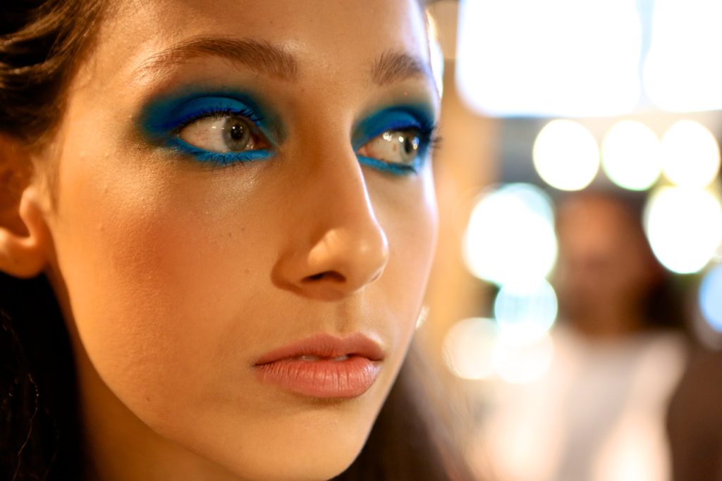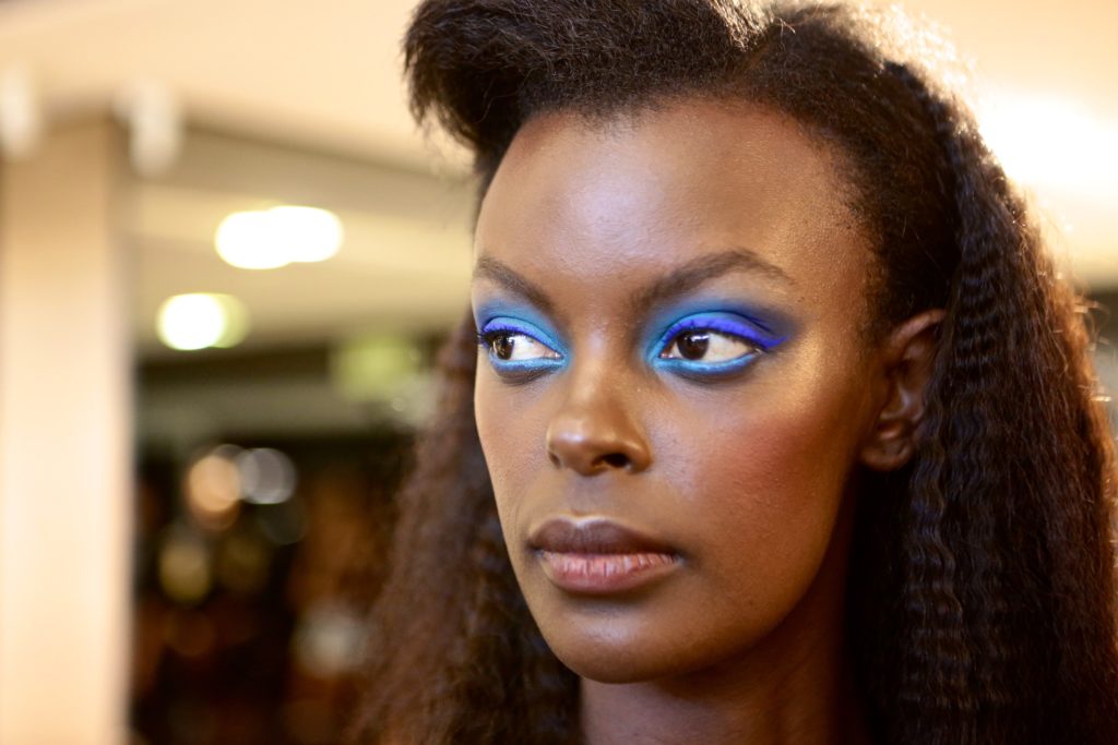 As seen at Sisiano at the Lagos Fashion Week A/W18 presentations, Marco Louis, Raine Tauber and the MAC team opted for eye-catching colour across the eyelid at Gavin Rajah and the same technique was applied to the lower waterline offering a unique spin on a typical runway eyeshadow look.