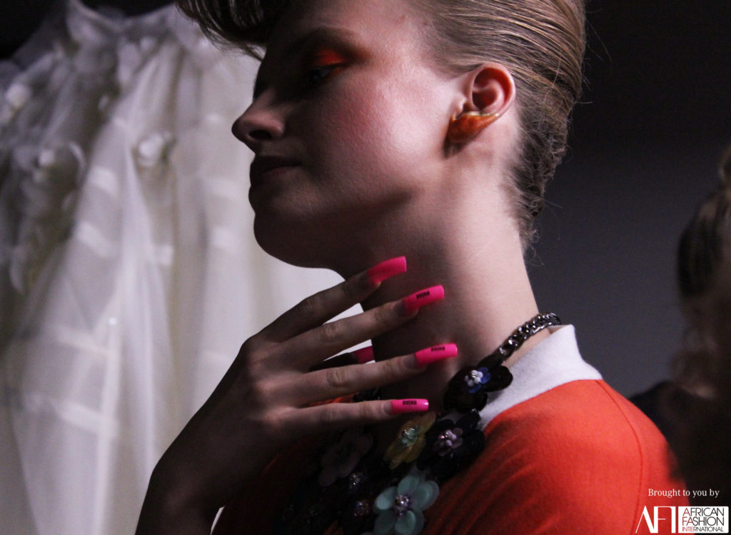 Another cross continental trend – bold lips as seen as Mo Agusto were spotted at AFI Capetown Fashion Week. We are pretty partial to a bold red or purple on a regular day, so we were easily sold on this look with its simultaneously matte but glossy finishes. The colour payoff on these lipsticks are pretty spectacular!