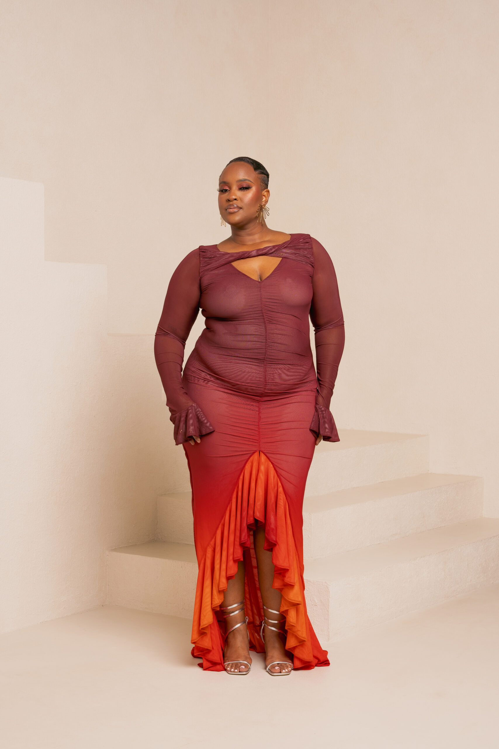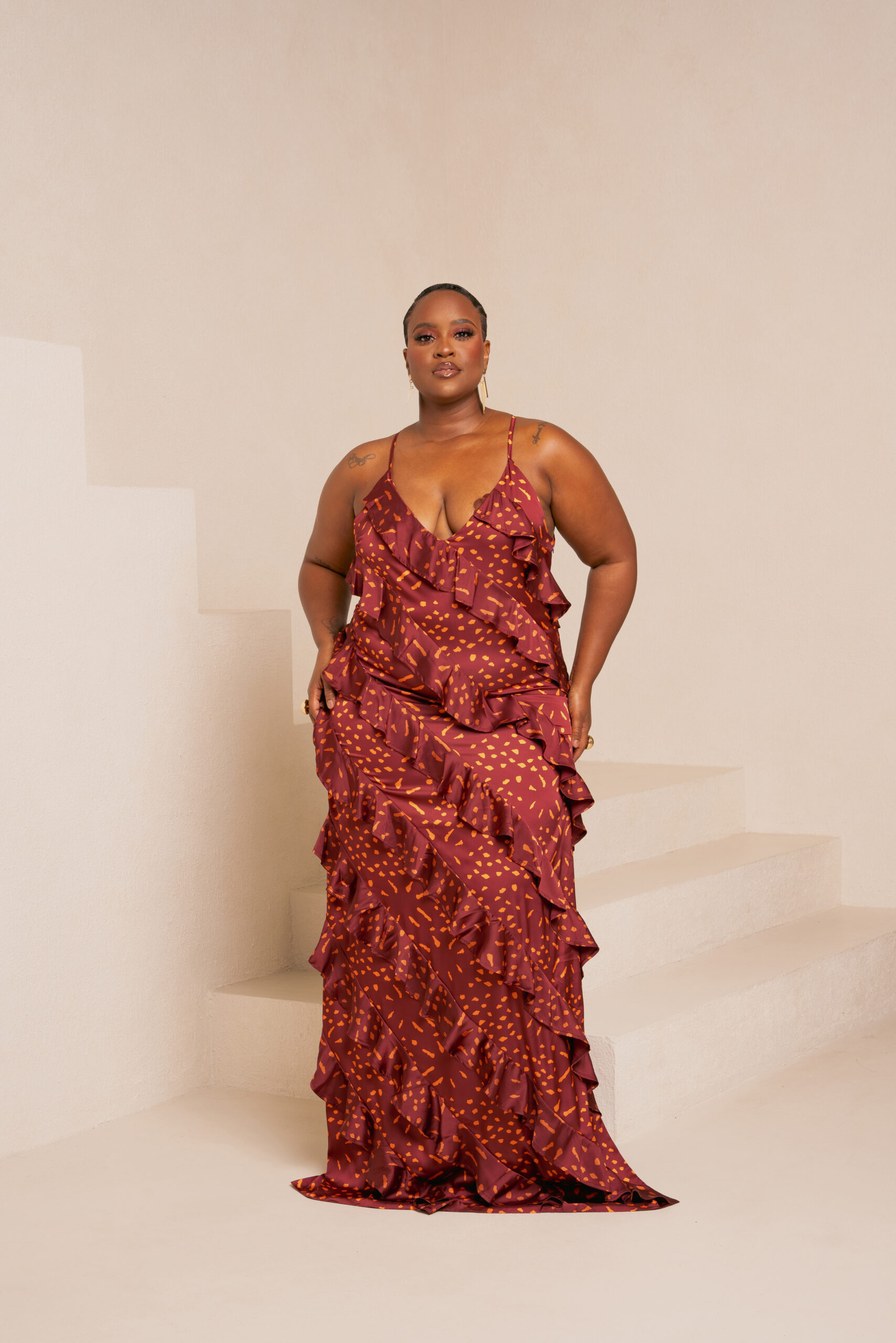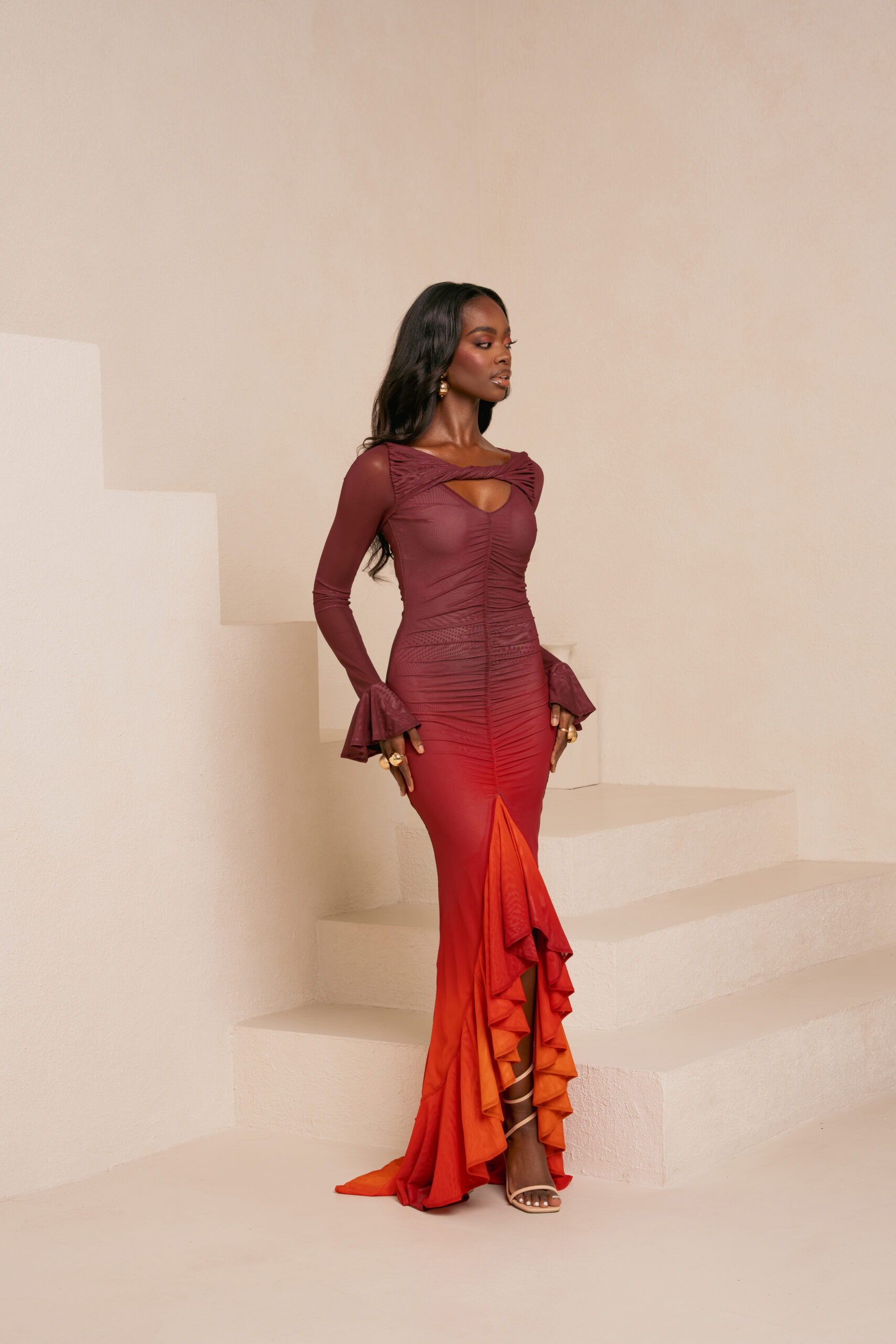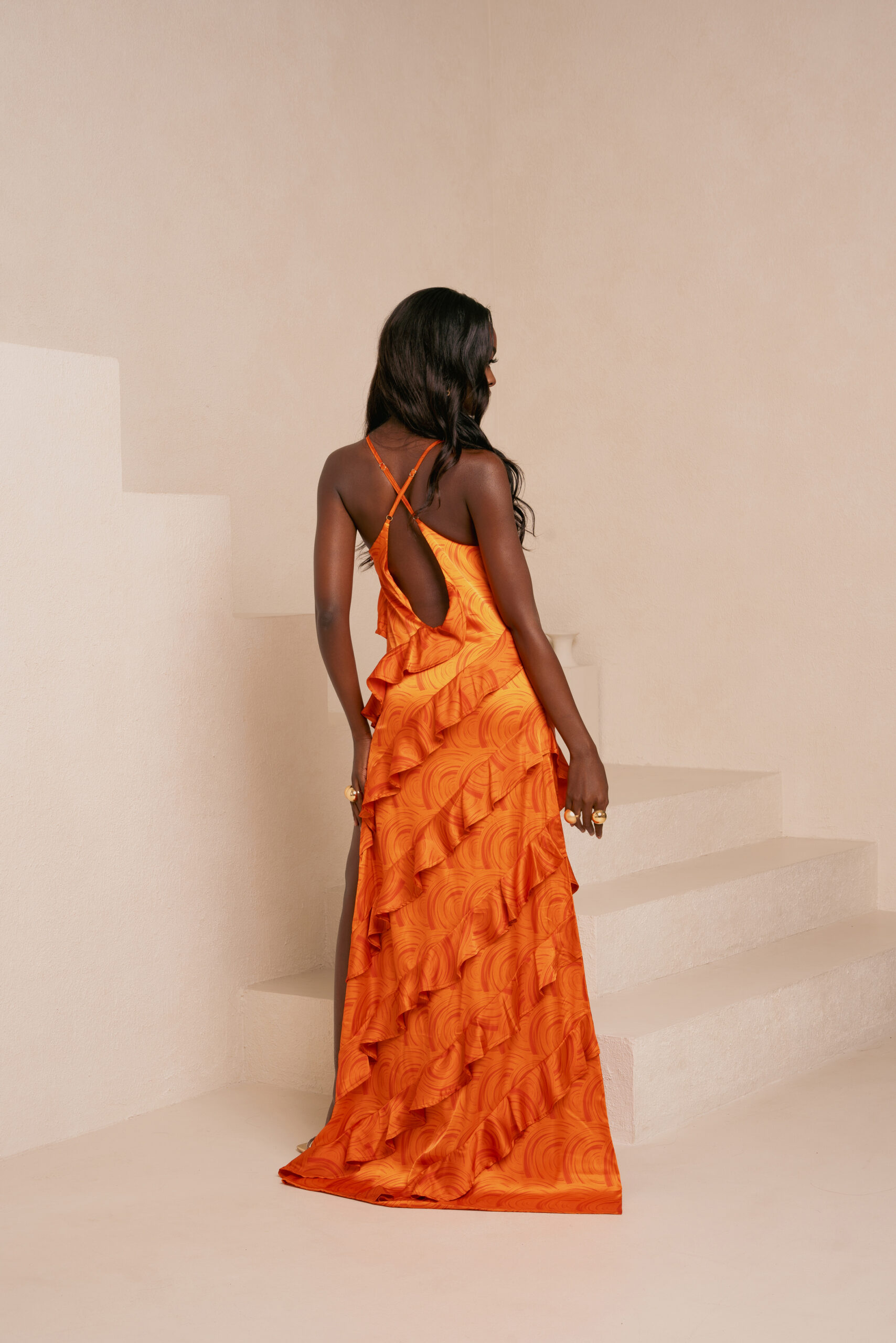 IZA ORANGE RUFFLE MAXI DRESS