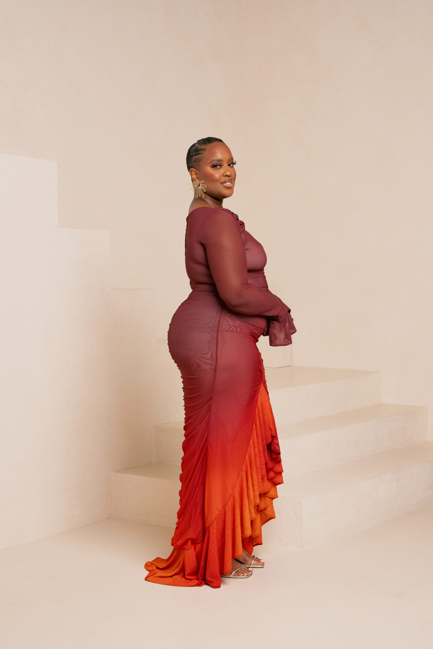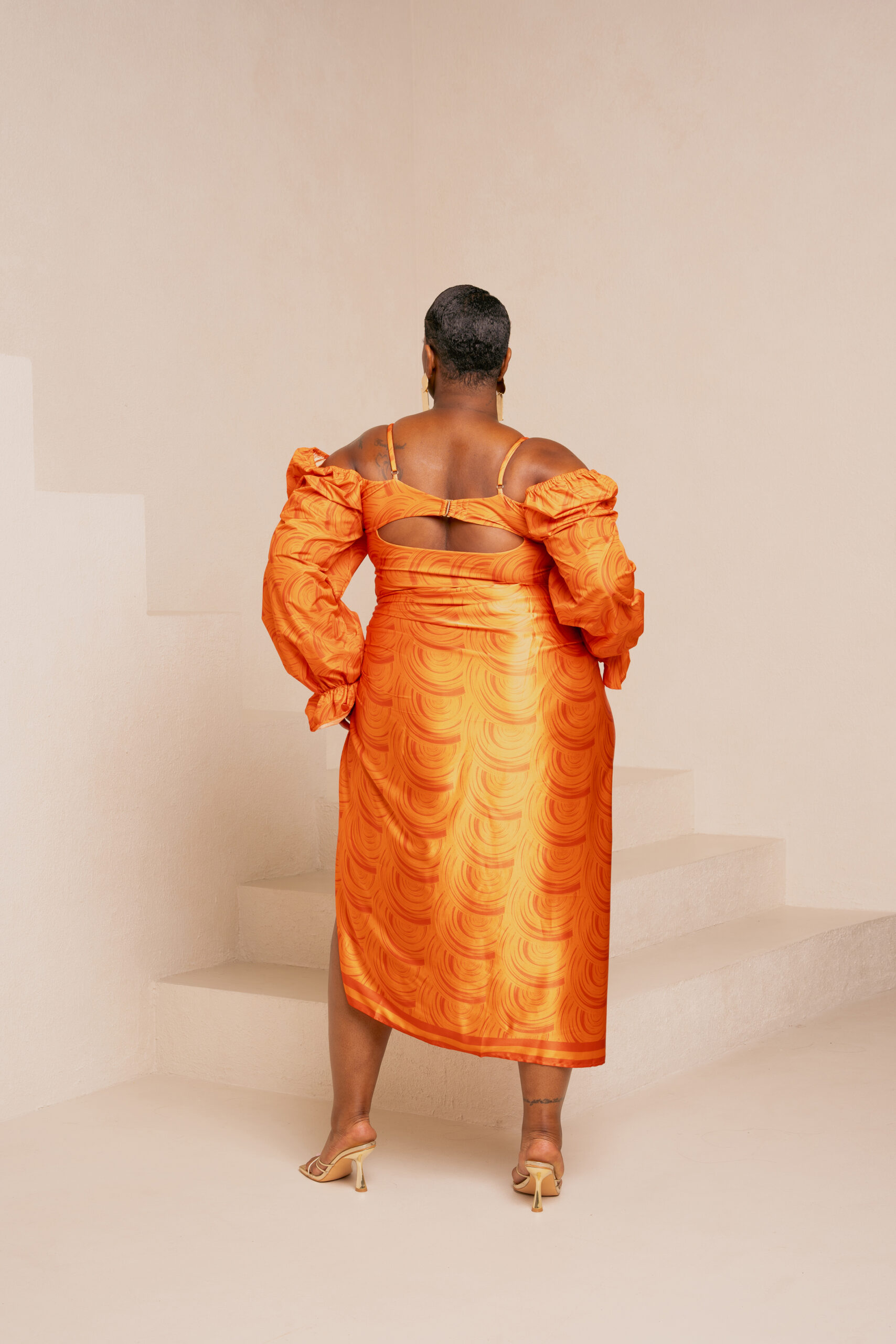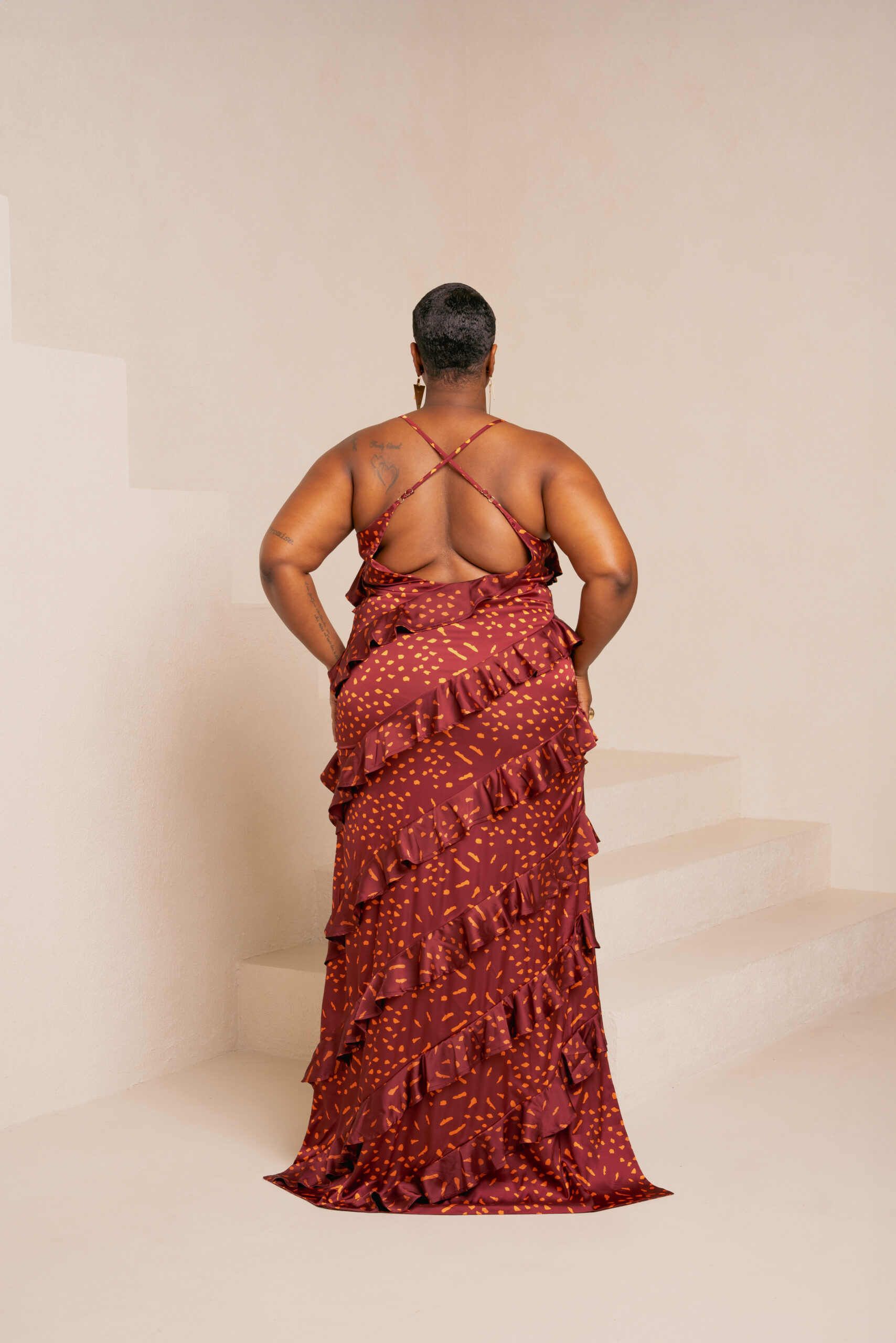 AMINAH ORANGE RUFFLE MAXI DRESS