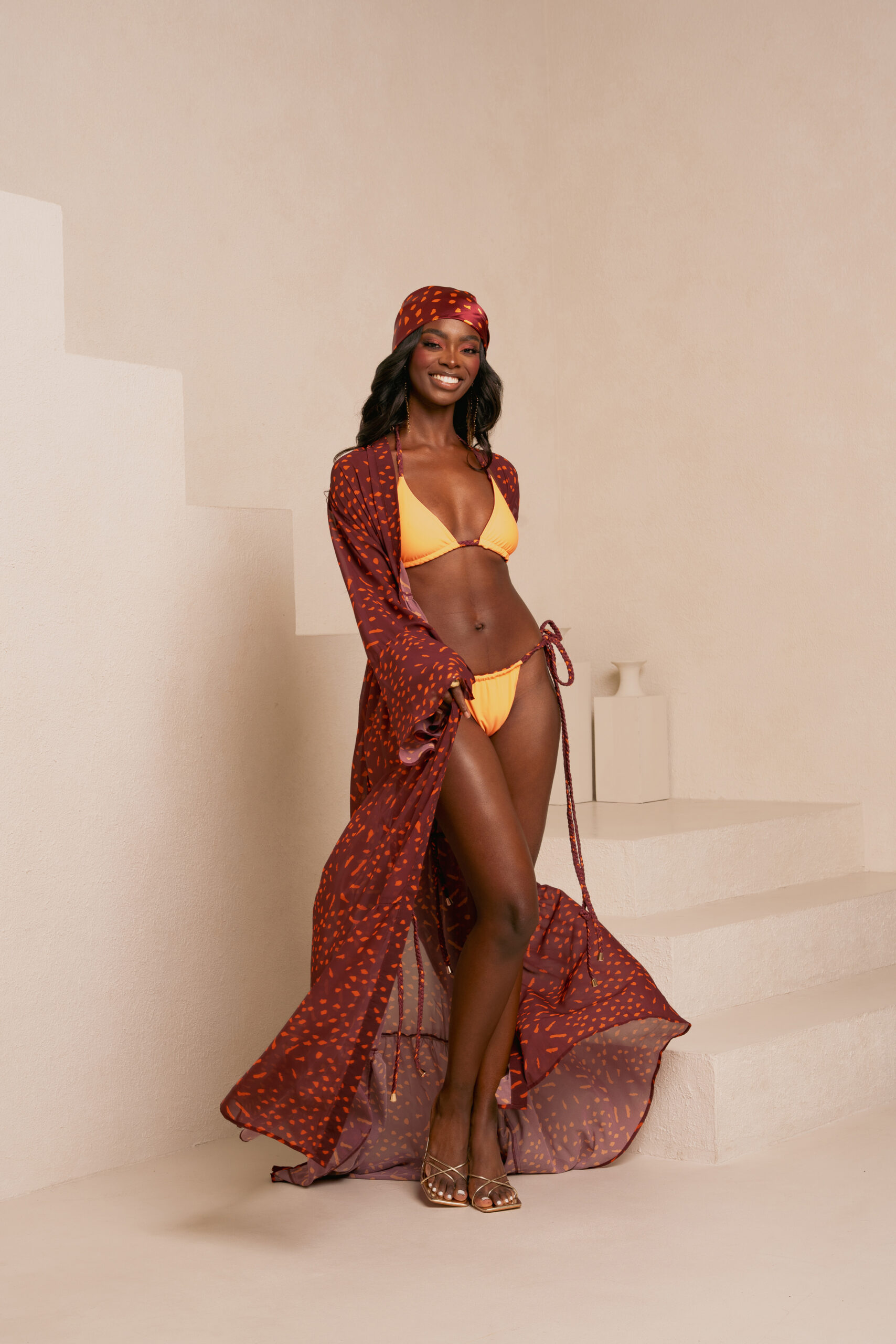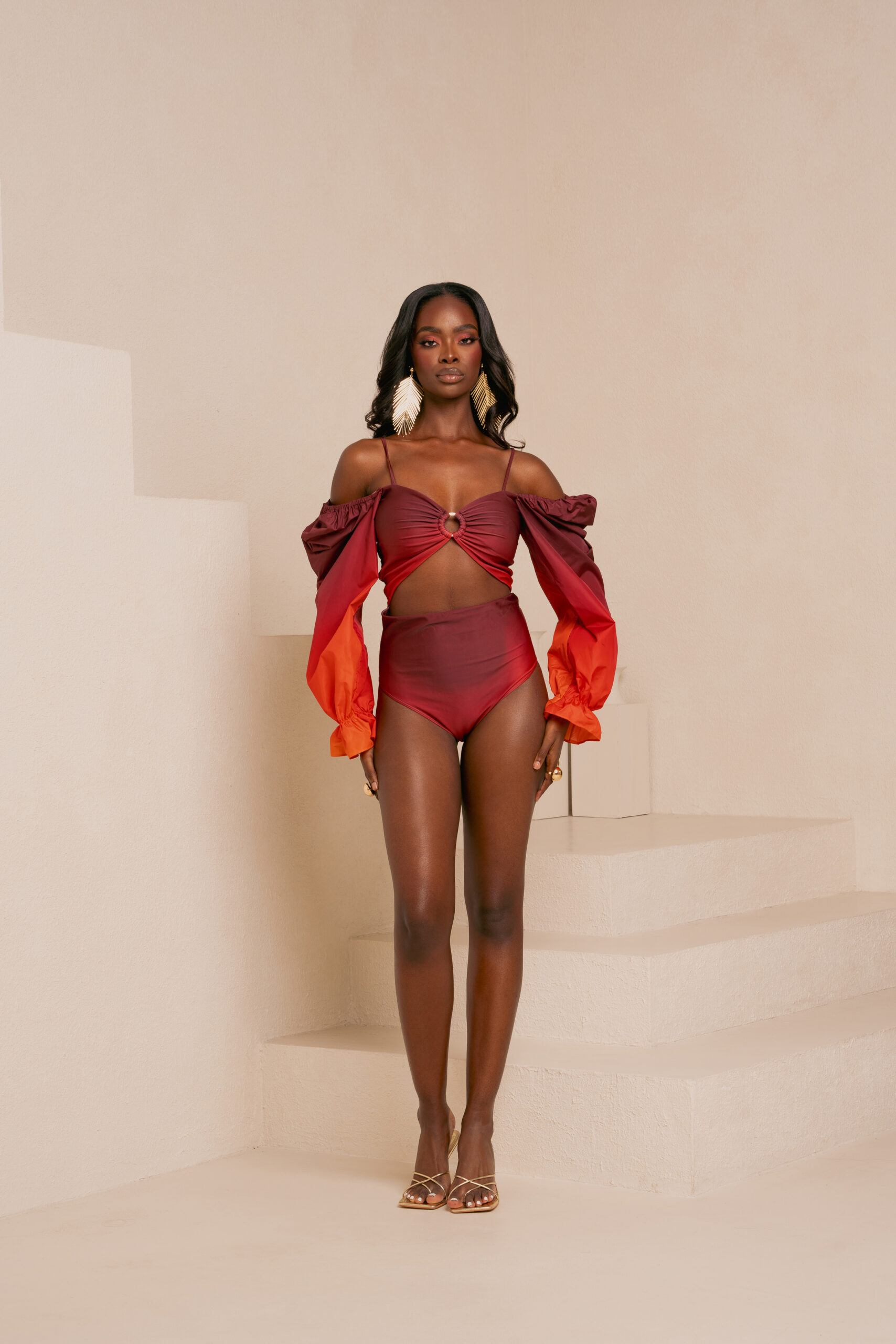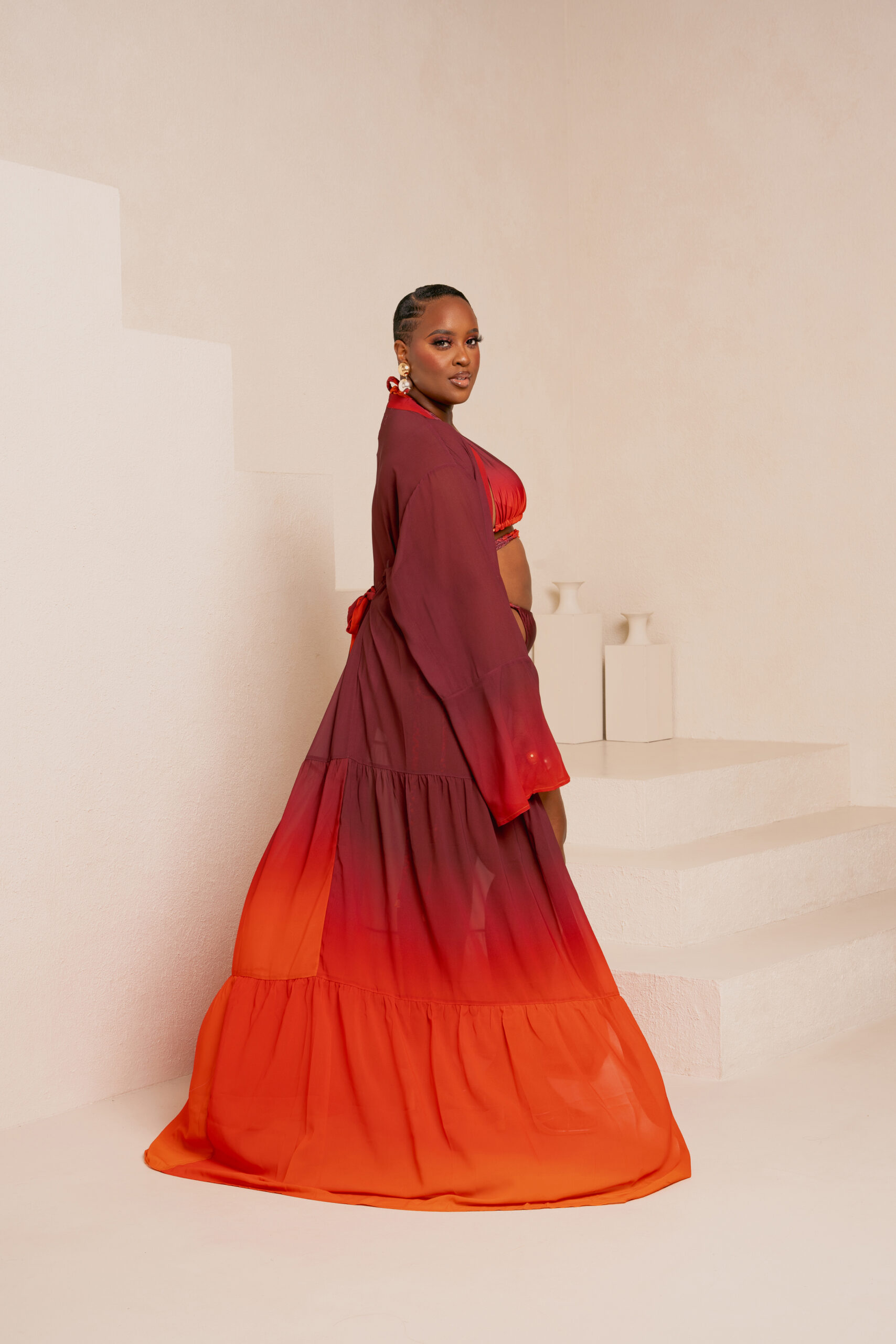 Inspired by the magnificent sunrise and sunset colours, this collection brings the awe-inspiring beauty of nature’s transitions to resort wear. With rich hues of reds, oranges, and purples, the collection reflects both the vibrant energy of dawn and the calming peace of dusk. The ever-changing colours of sunrise and sunset are universally admired for their beauty. In this collection, fiery reds, soft oranges, and deep purples come together to create timeless, elegant pieces perfect for any setting.