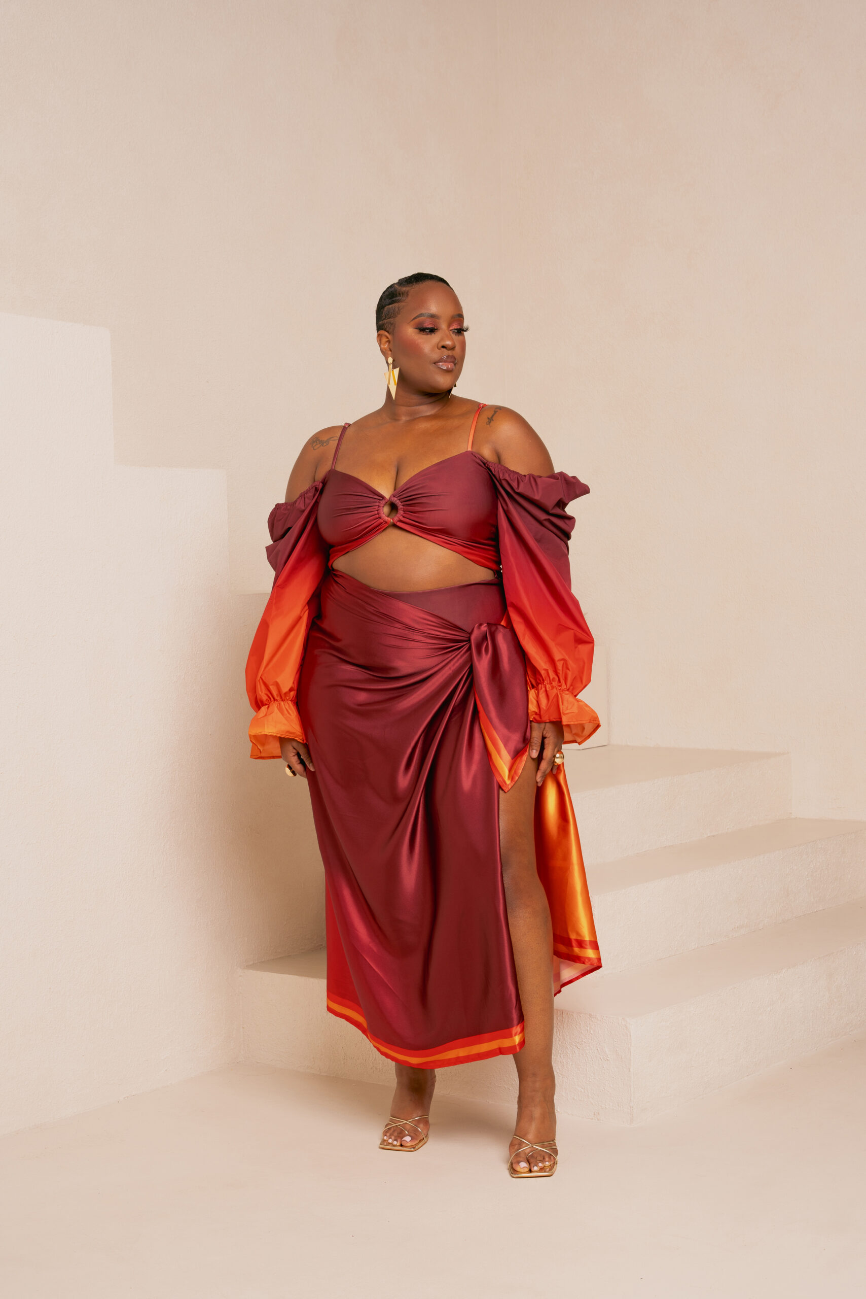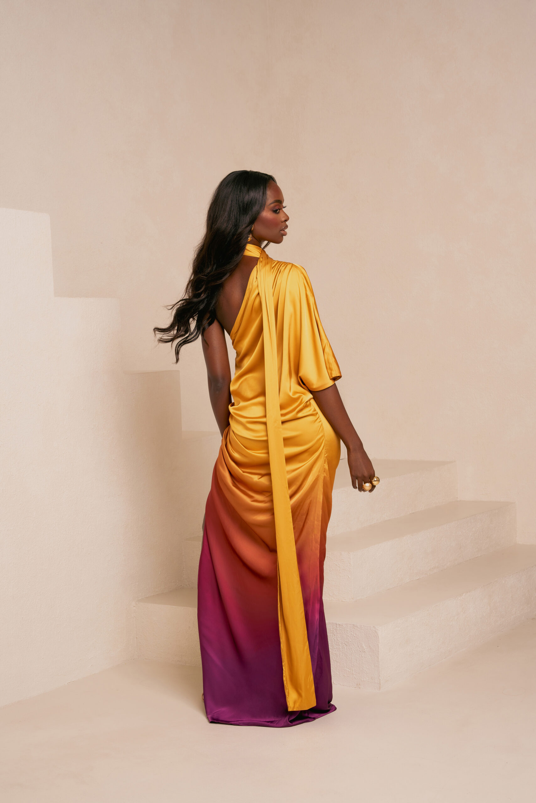 From sun-soaked beach days to chic sunset dinners, the Shakara Resort Collection III offers a range of versatile styles perfect for any occasion. The collection features flowing maxi dresses in warm oranges and reds that capture the glow of a setting sun, alongside chic separates in cool purples that mirror the calm of twilight. Designed to transition from day to night with ease, these pieces embody both effortless style and elegance. OFUURE’s signature focus on comfort is woven into the very fabric of the Shakara Resort Collection III.