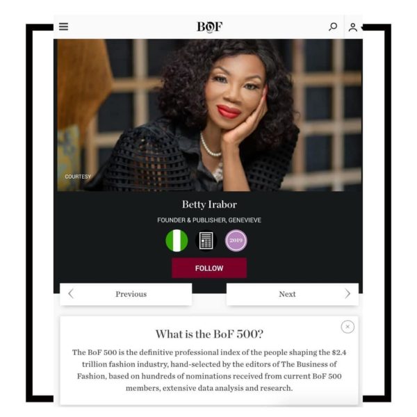 SEE NOW: Betty Irabor, Kenneth Ize, Adesuwa Aighewi & All The Africans On The #BoF500 2019 ListBNS October 2, 2019