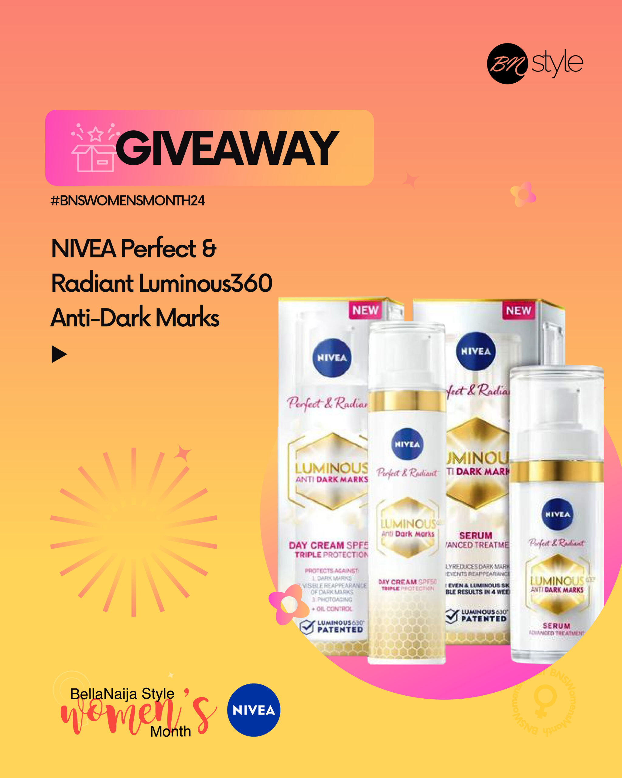 Say hello to this week’s Giveaways, BellaStylistas! You stand a chance to win a NIVEA Perfect & Radiant Luminous630 Anti-Dark Marks lotion this week as…