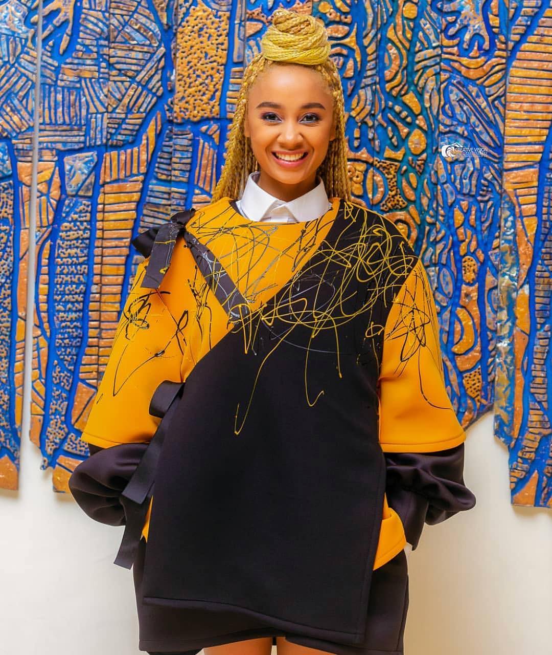 Joining Sandra Ankobiah at Glitz Africa Fashion Week 2018, Ghanaian singer and influencer Sister Deborah killed the front row in new season Papa Oppong, which featured signature hand painted details and ribbon embellishment.
