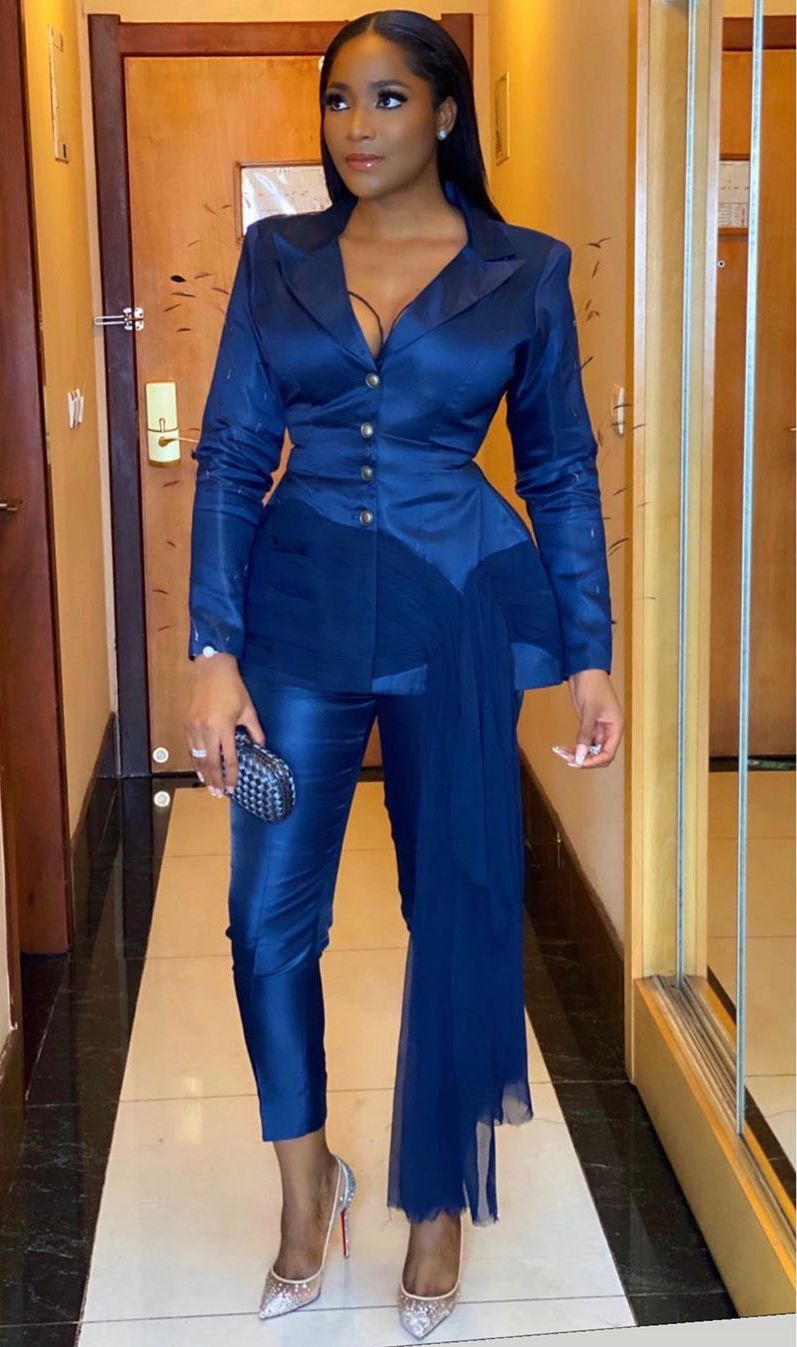 Sylvia Nduka looked elegant in a custom form-fitting Weiz Dhurm Franklyn suit which featured an extended tulle detail.