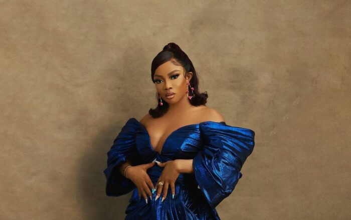 We Love Toke Makinwa’s Bold Blue Look For The New Episode Of ‘BBNaija: The Buzz’