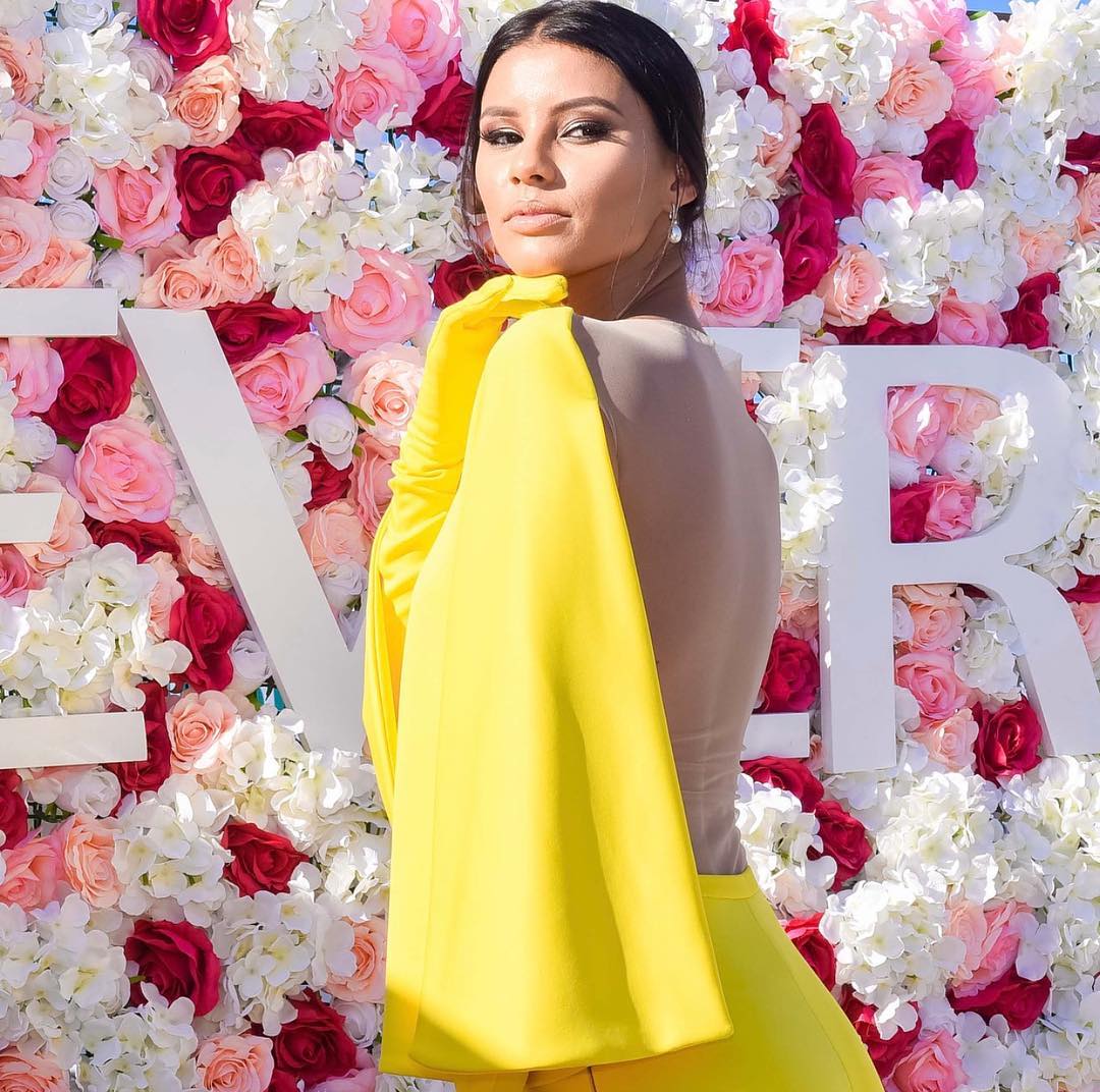 Tamaryn Green’s stellar choice of this canary yellow jumpsuit was perfect for more reasons than one. The stunning piece is beautiful from the front and back – all she had to do was turn around to show off the sultry peekaboo effect of the white mesh.