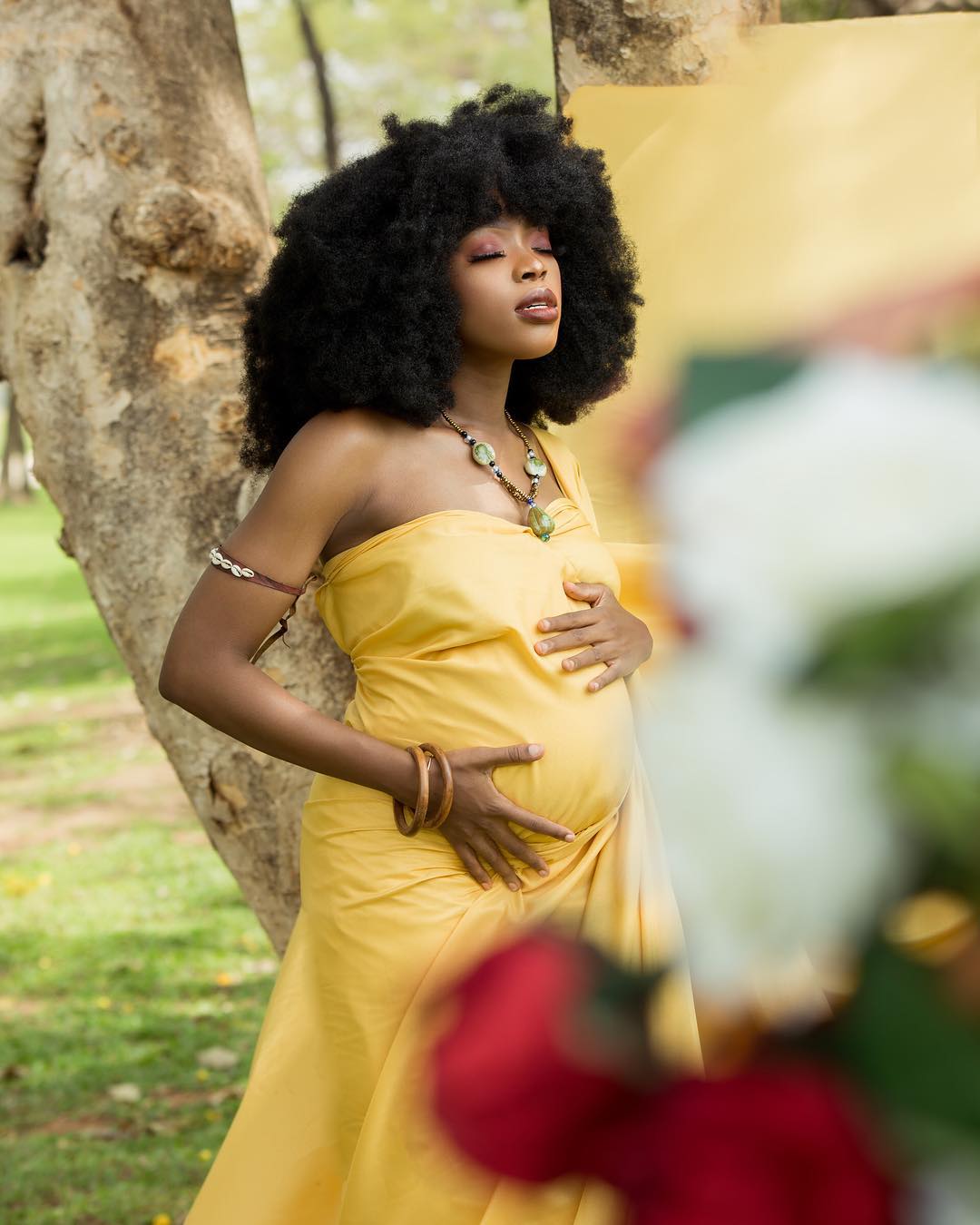 Bella has always been a free spirit and has always embraced her Africanness so we are very happy to see that the influencer did not lose that during her pregnancy and if anything, she channeled it even more and it is very evident in her pregnancy style. Bella embraced her bump and centered it while dressing up and we dig the goddess vibes she served!