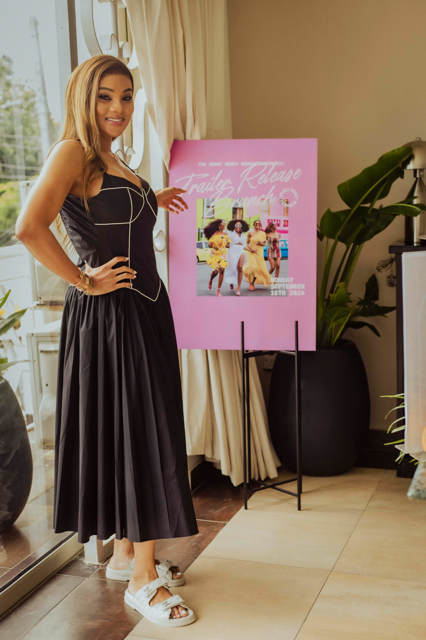 Nnenna Okoye stood out, serving up a black dress with white bodice piping and white Chanel slippers.