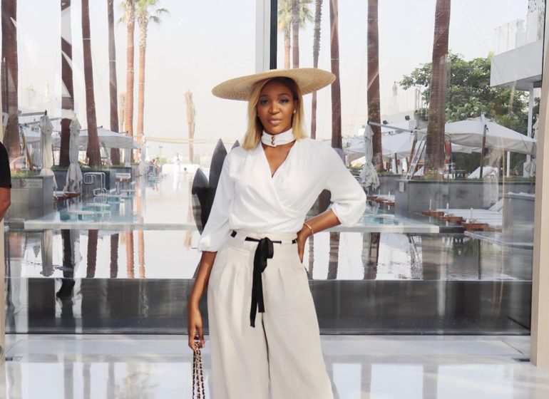 For beauty, Tiwa chose a blond bob that paired perfectly with her skin tone and played up her eyes with bold lashes, defined brows and a vibrant eyeshadow look, finishing off with glossy brown combo lips.