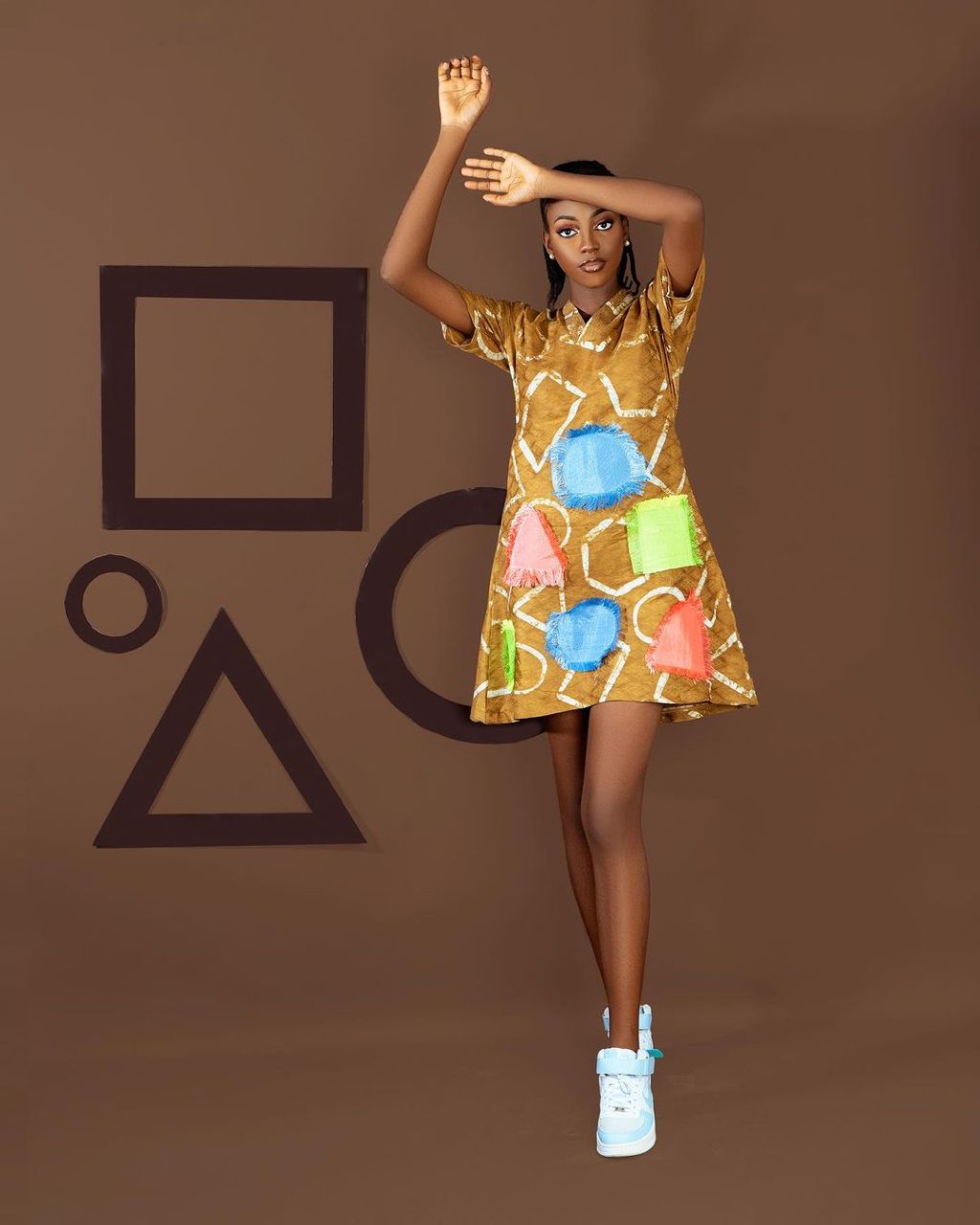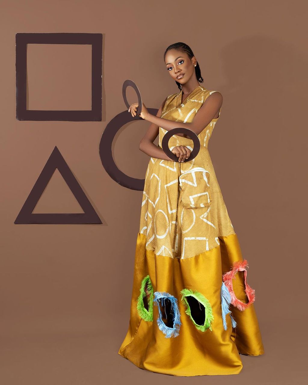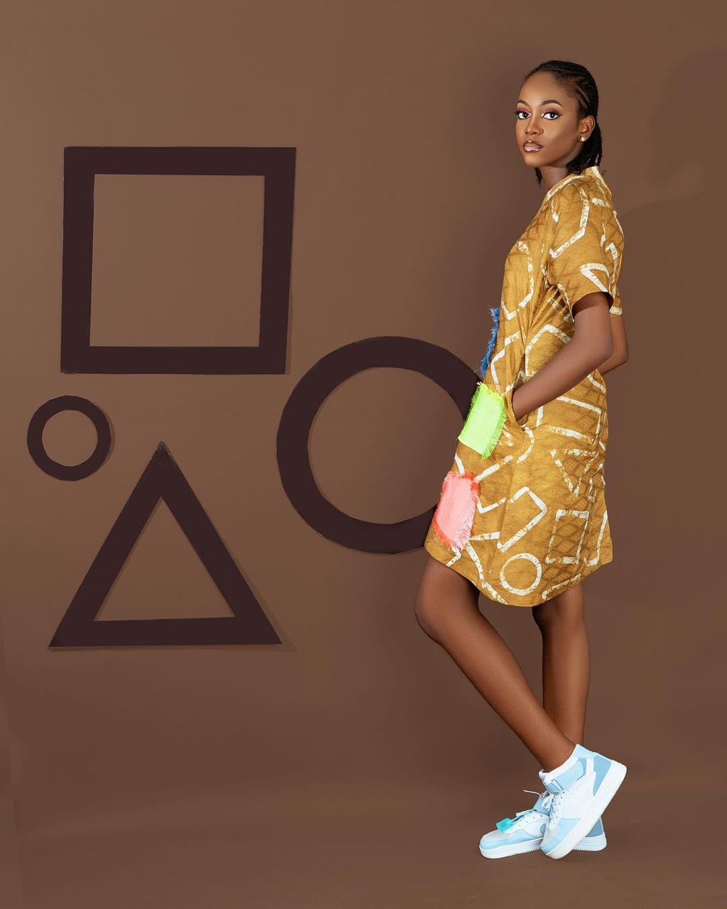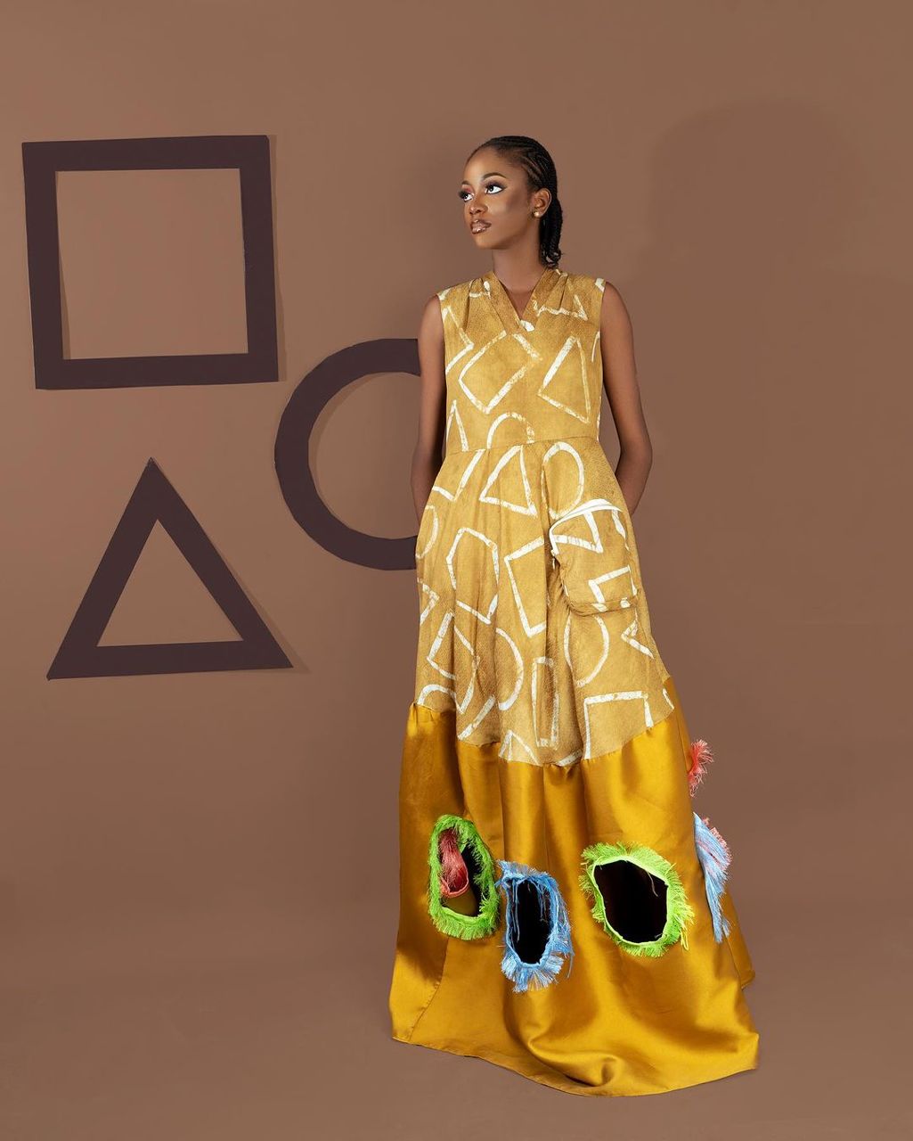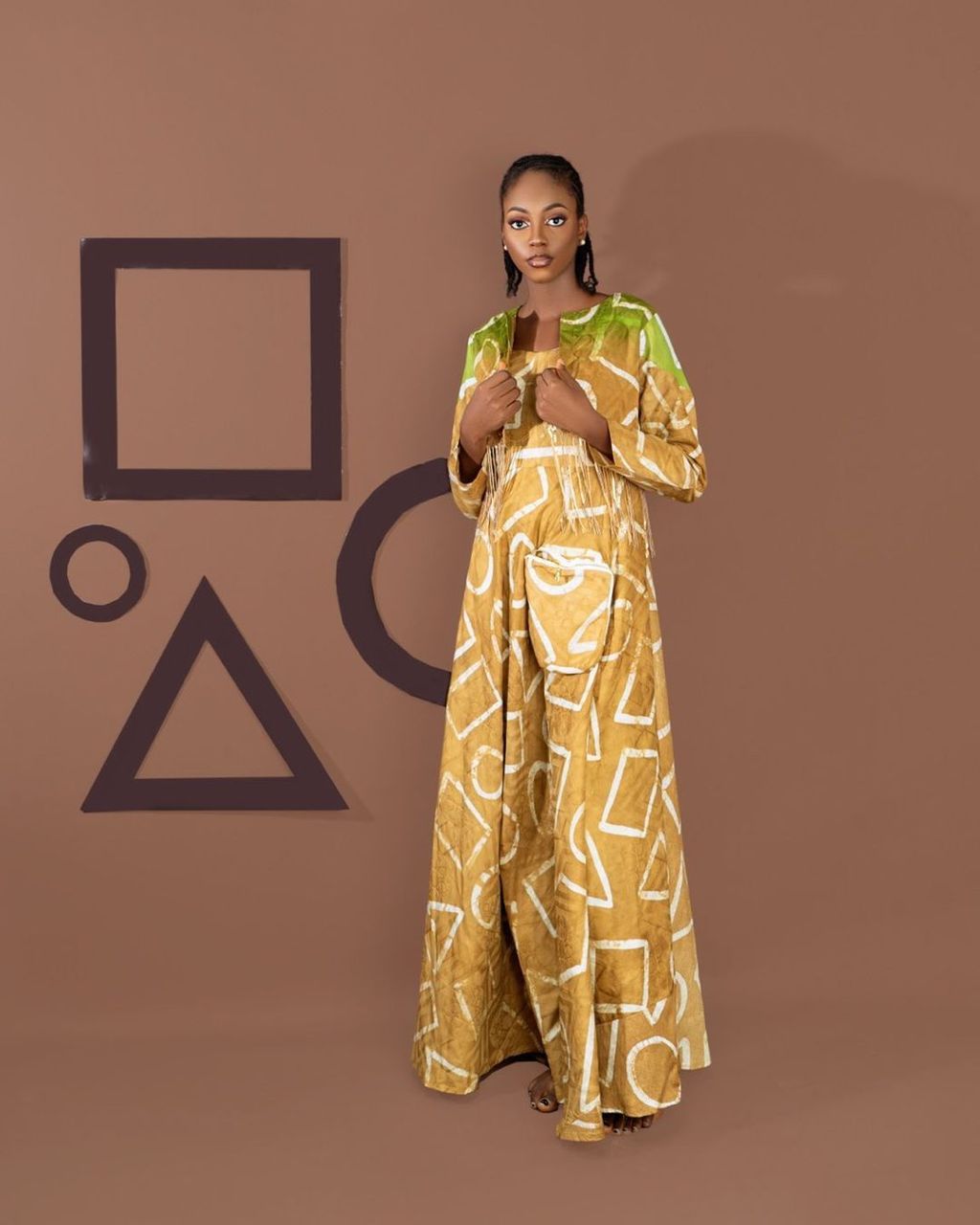 Infusing the aesthetic and functionality of the British combat workwear (also known today as Cargo), this collection reimagines baggy pockets, infusing them with the vibrant spirit of African Adire and Aso-oke fabrics. These rich textiles, adorned with intricate patterns and bold colours, serve as a canvas for showcasing the diversity of shapes that define us. Apẹrẹ is more than just a fashion statement, it is a celebration of inclusivity and self-expression. The shapes and colours are woven into each fabric serve as a reminder that beauty knows no boundaries.
